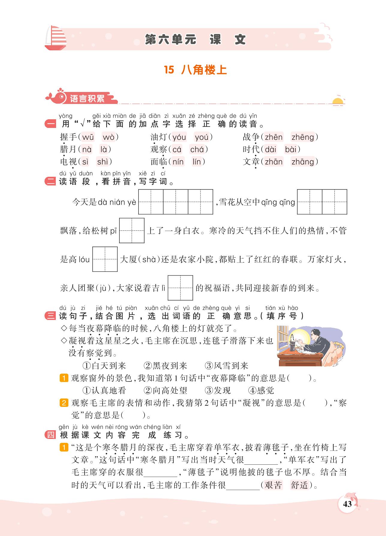 2021上册二年级语文人教版 第六单元 课文——15 八角楼上
