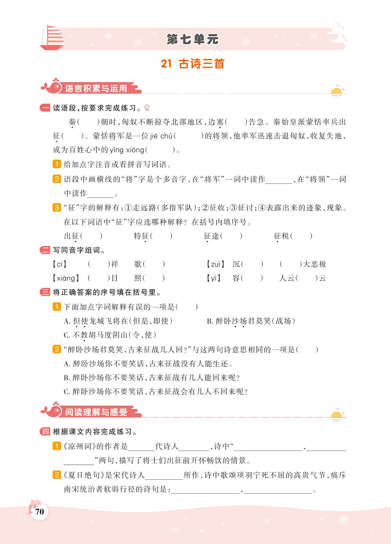 2021上册四年级语文人教版 第七单元——21 古诗三首