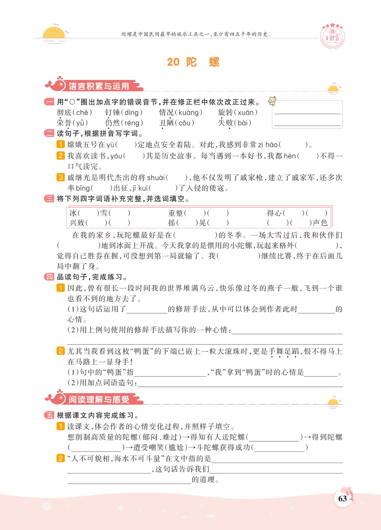 2021上册四年级语文人教版 第六单元——20 陀螺