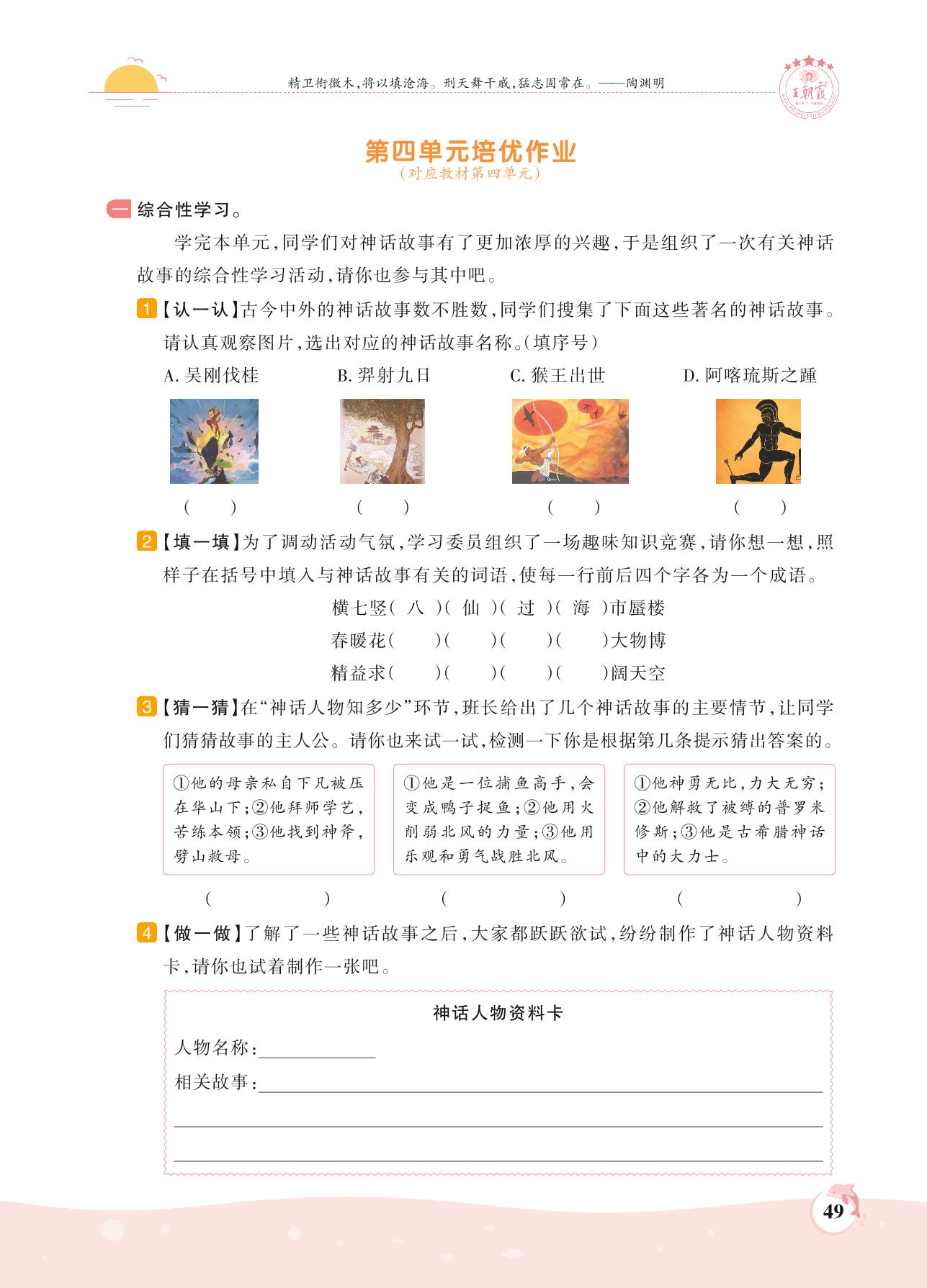2021上册四年级语文人教版 第四单元——第四单元培优作业