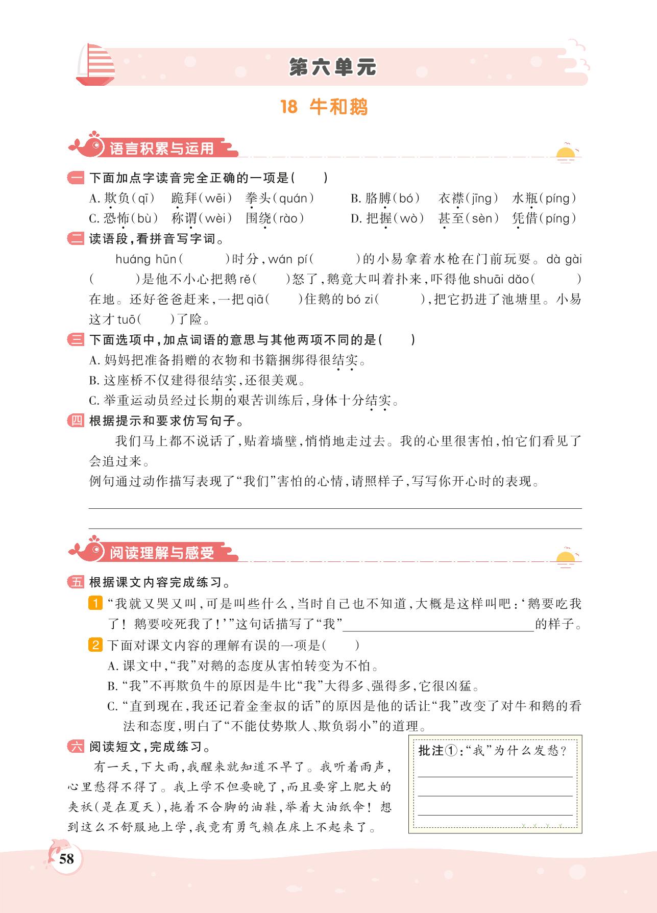 2021上册四年级语文人教版 第六单元——18 牛和鹅
