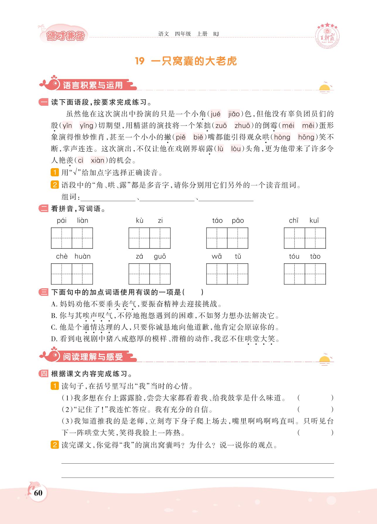 2021上册四年级语文人教版 第六单元——19 一只窝囊的大老虎