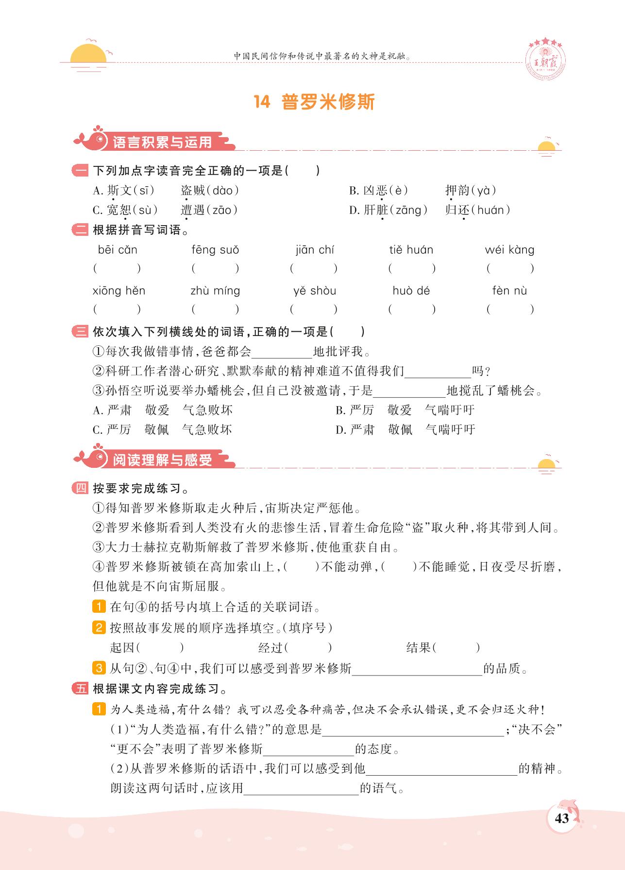 2021上册四年级语文人教版 第四单元——14 普罗米修斯