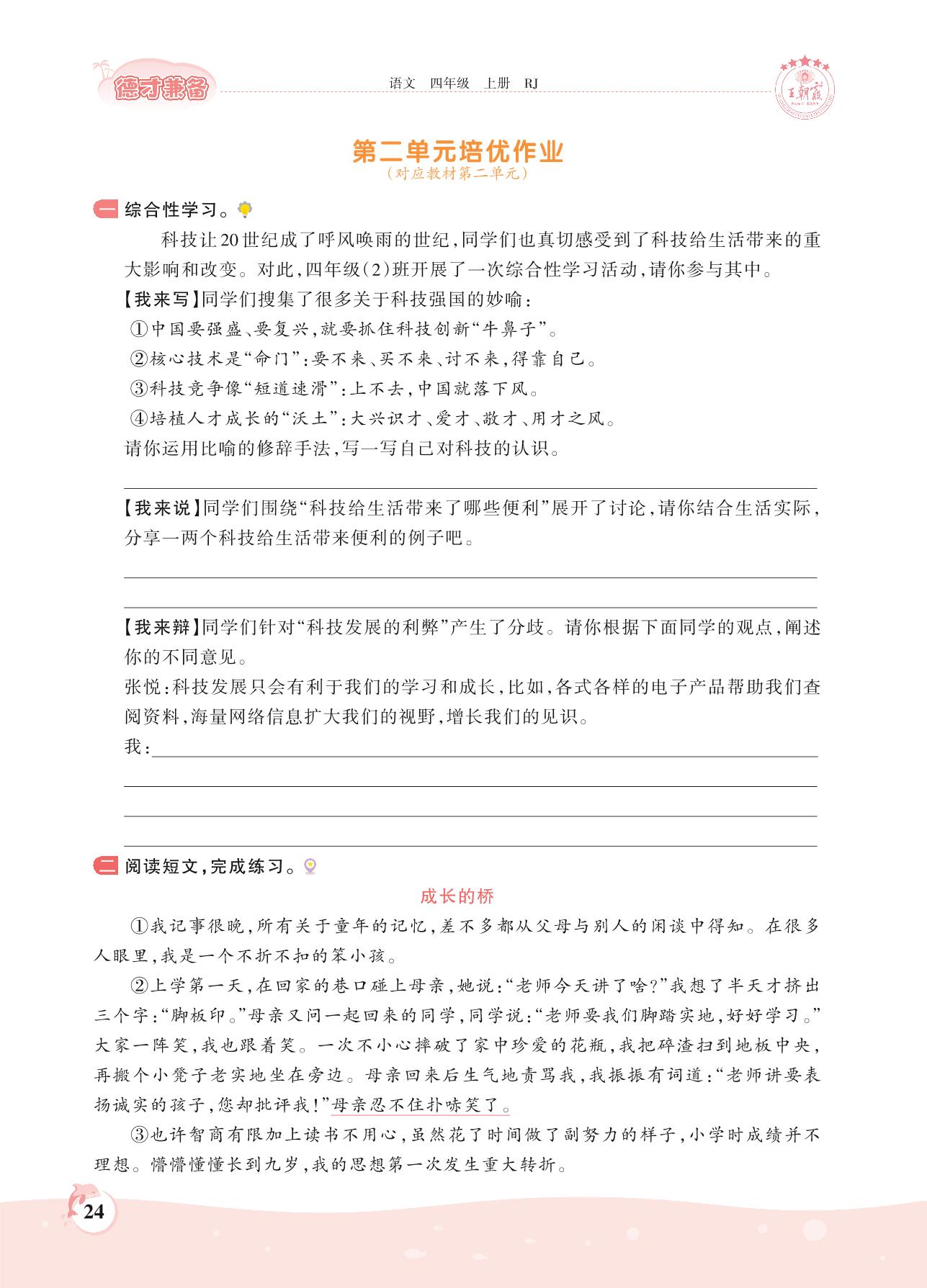 2021上册四年级语文人教版 第二单元——第二单元培优作业