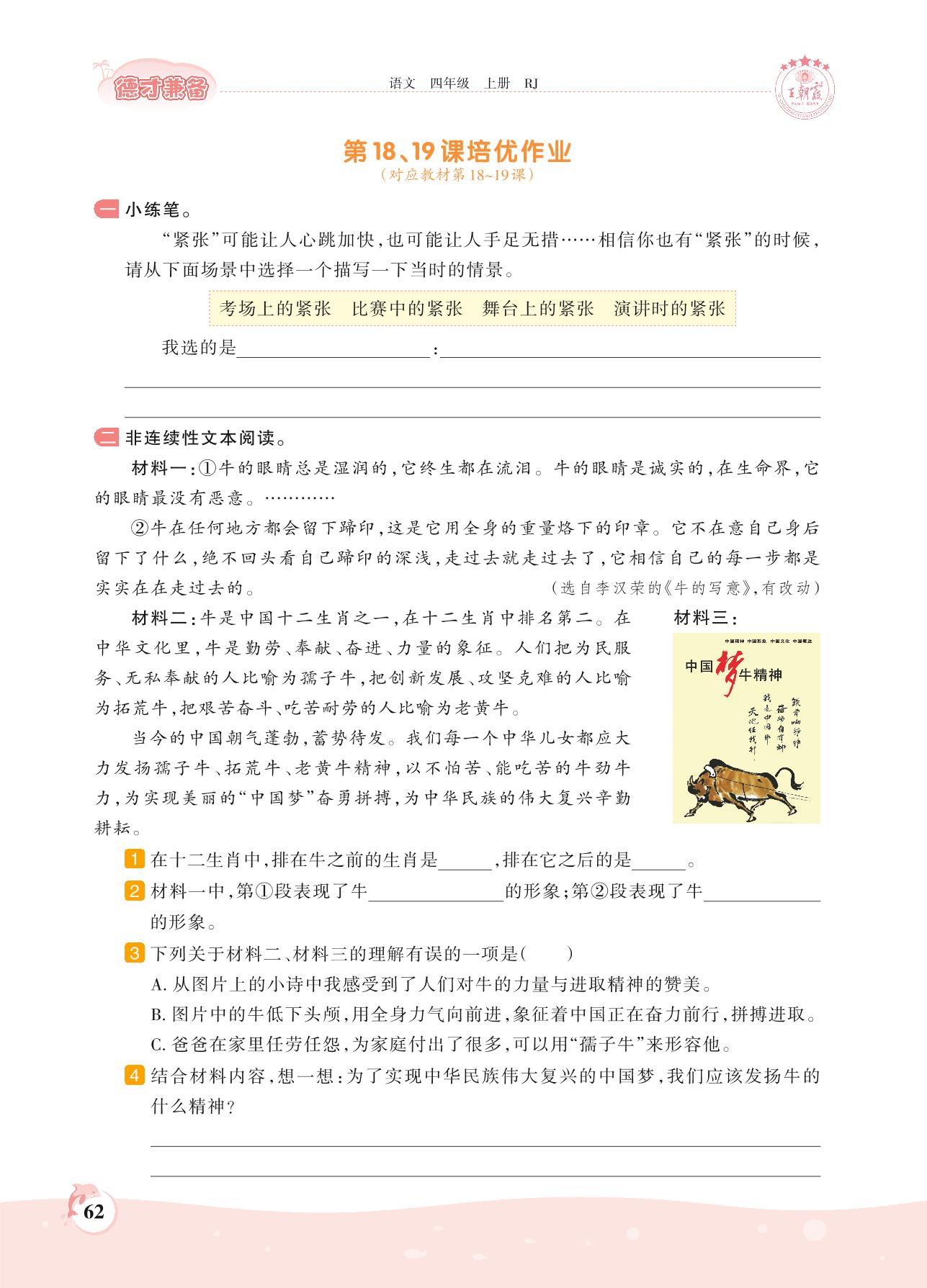 2021上册四年级语文人教版 第六单元——第18、19课培优作业
