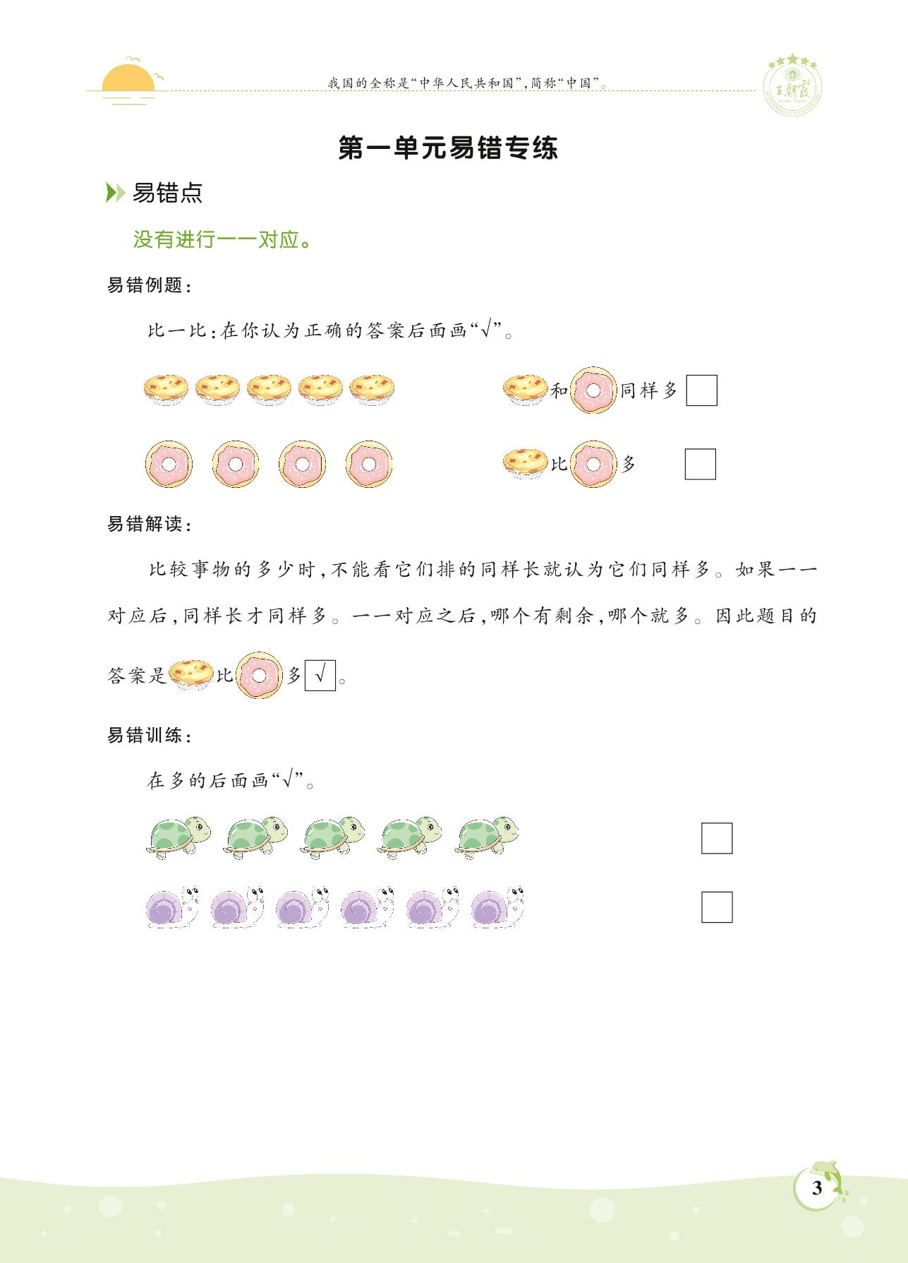 2021上册一年级数学人教版 第一单元 准备课——第一单元易错专练