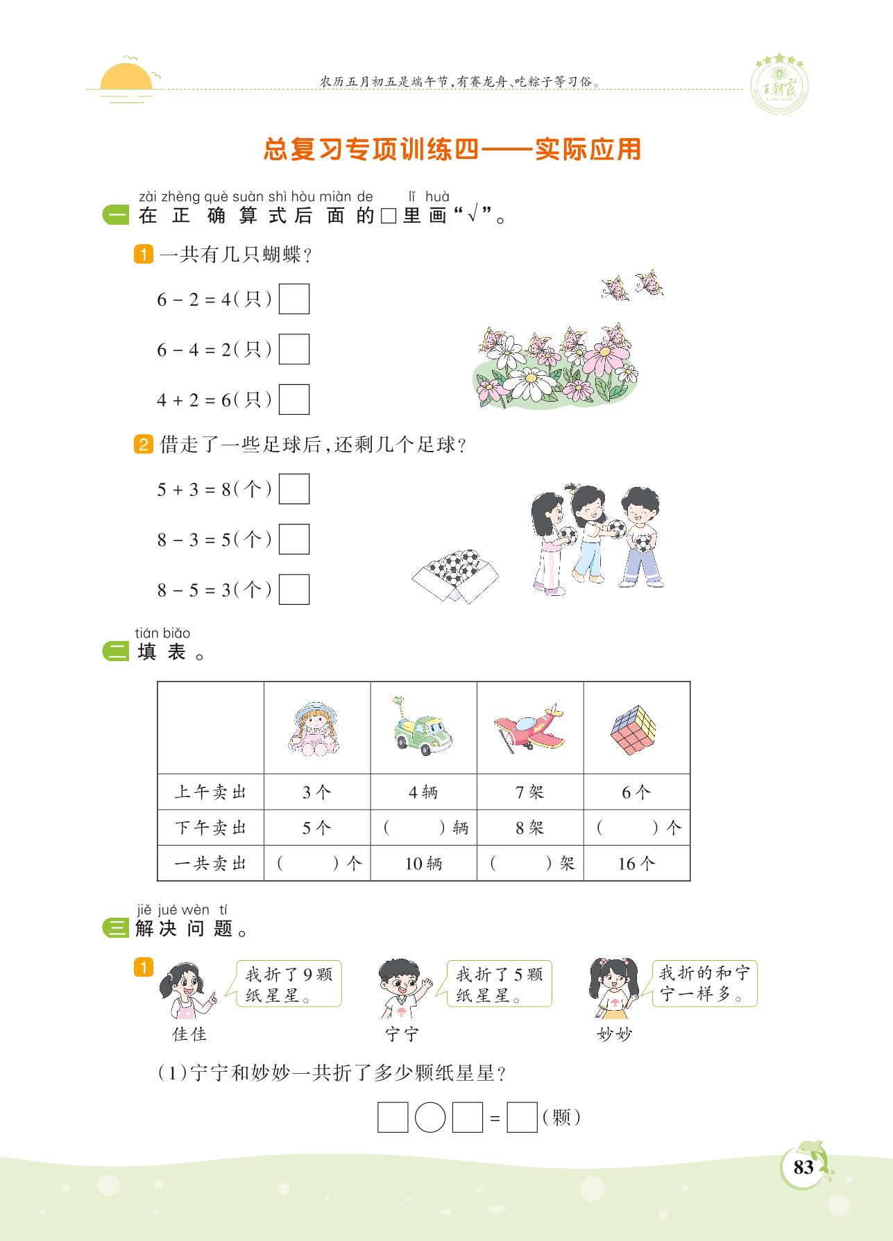 2021上册一年级数学人教版 第九单元 总复习——实际应用