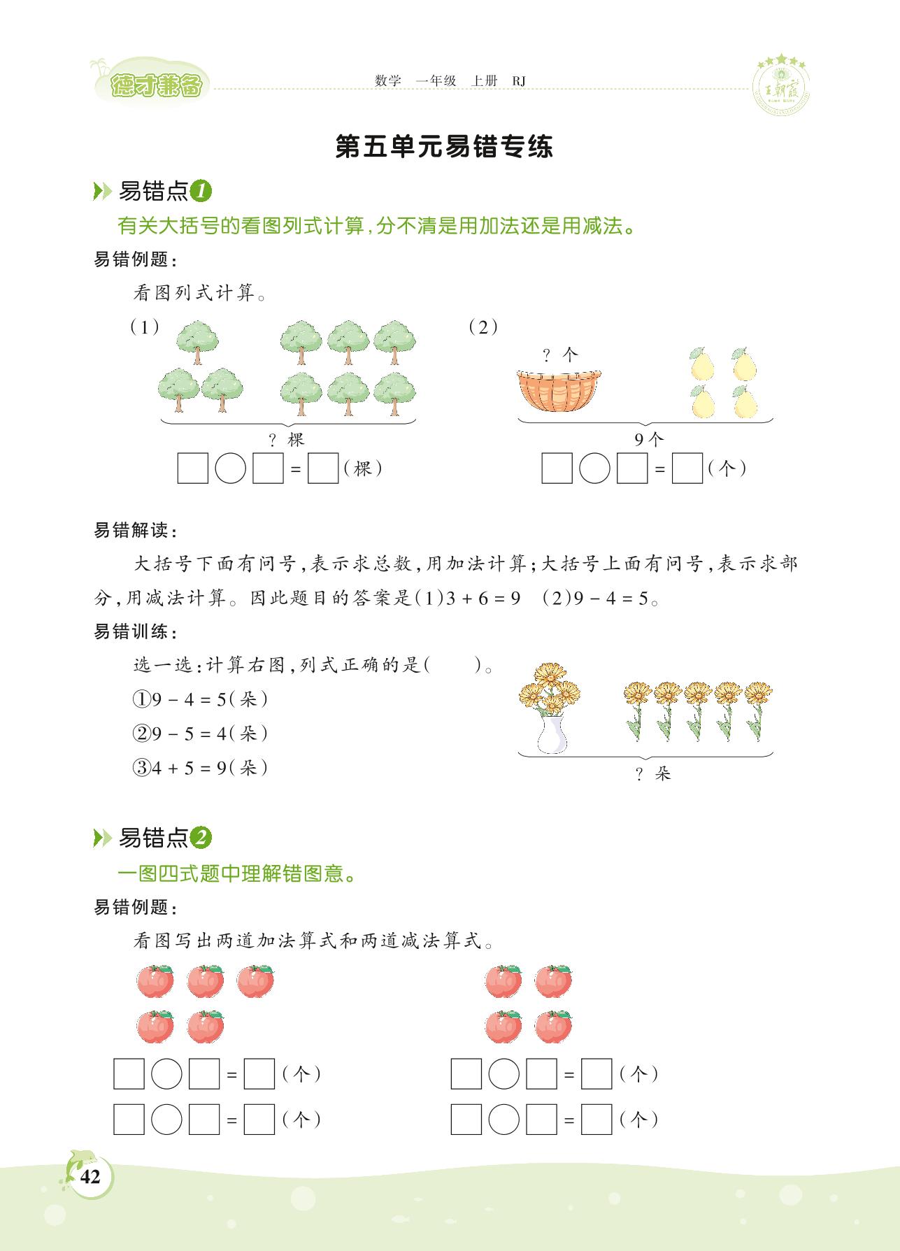 2021上册一年级数学人教版 第五单元 6~10的认识和加减法——第五单元易错专练
