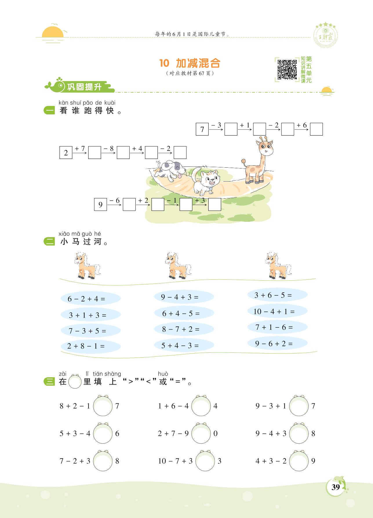 2021上册一年级数学人教版 第五单元 6~10的认识和加减法——10 加减混合