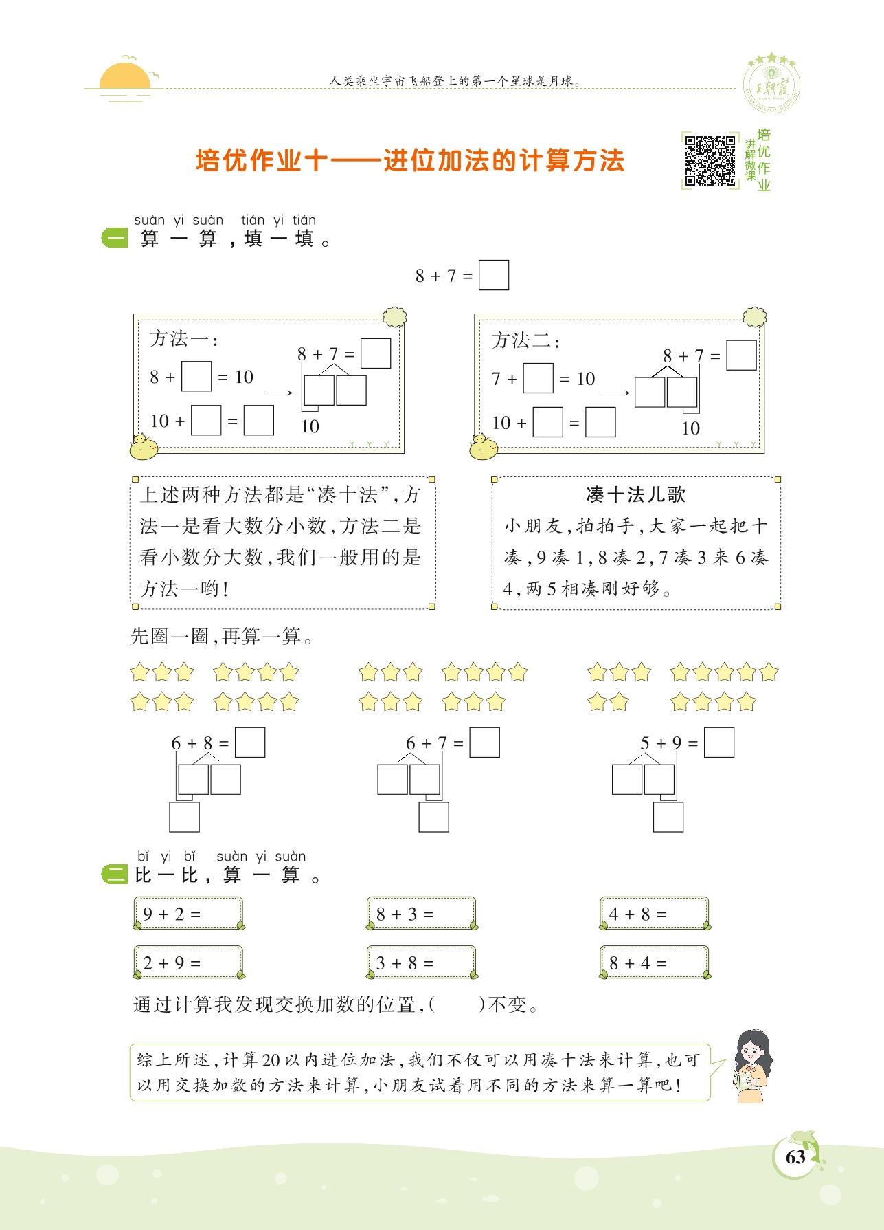 2021上册一年级数学人教版 第八单元 24以内的进位加法——培优作业十——进位加法的计算方法