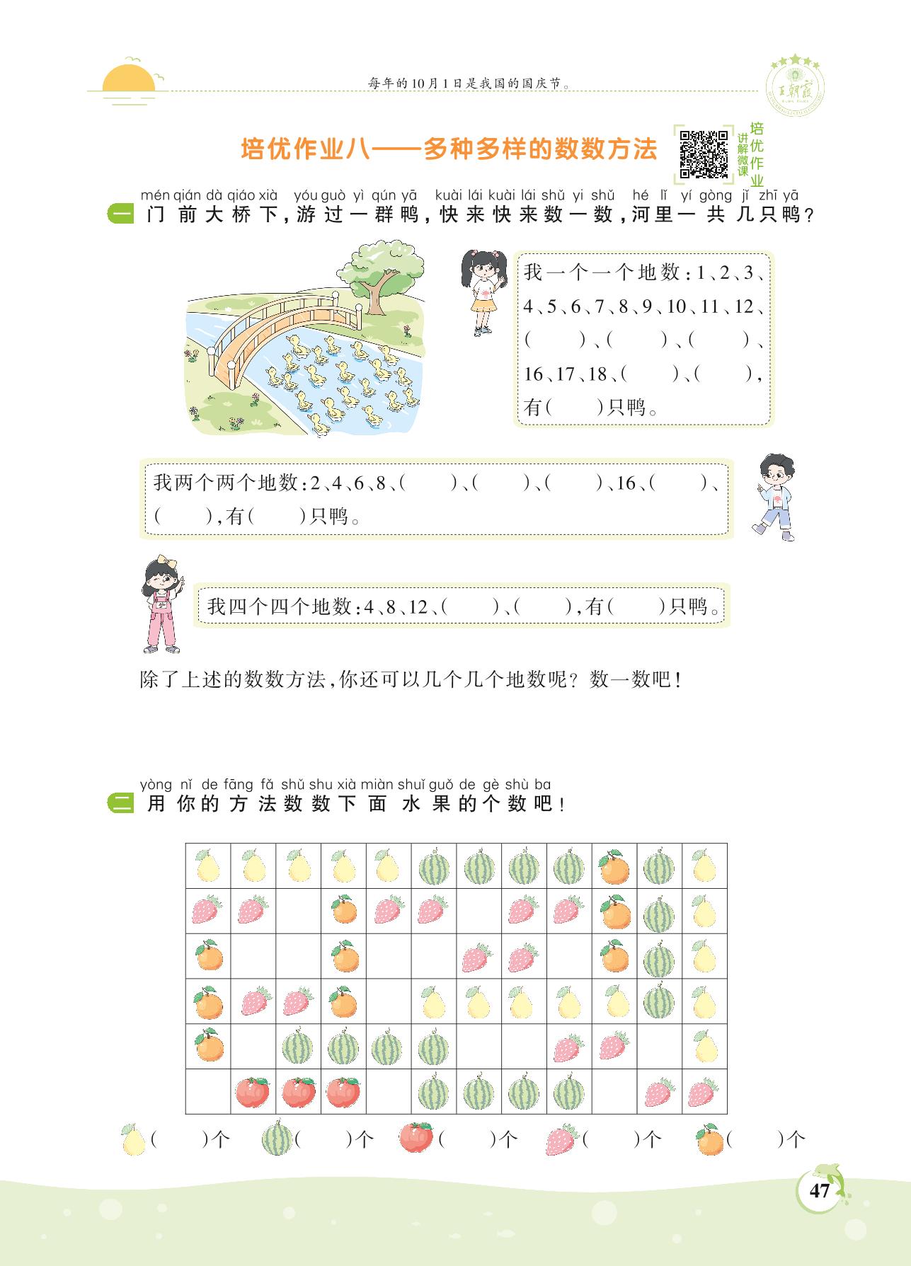 2021上册一年级数学人教版 第六单元 11~20各数的认识——培优作业八——多种多样的数数方法