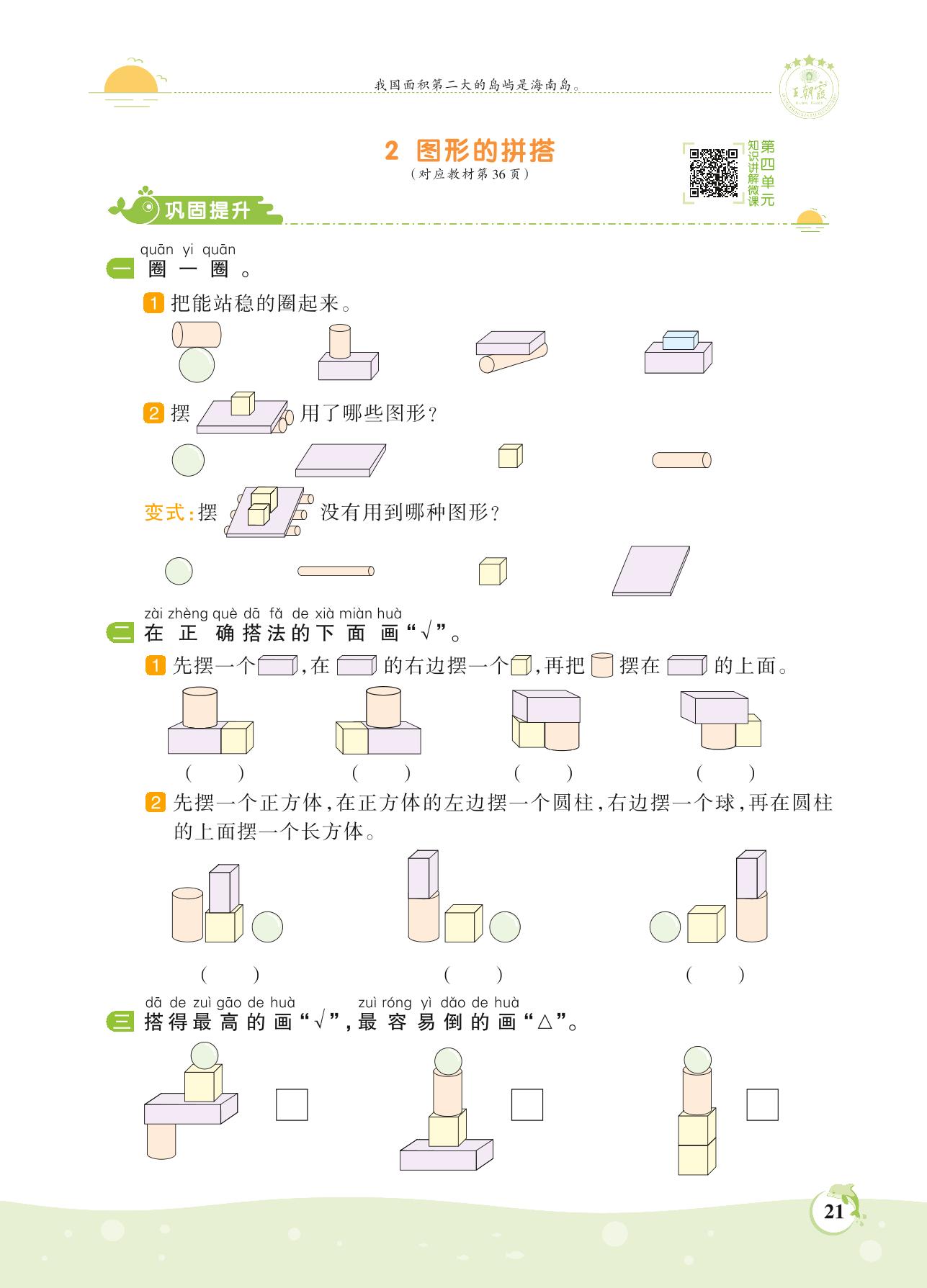 2021上册一年级数学人教版 第四单元 认识图形(一)——2 图形的拼搭