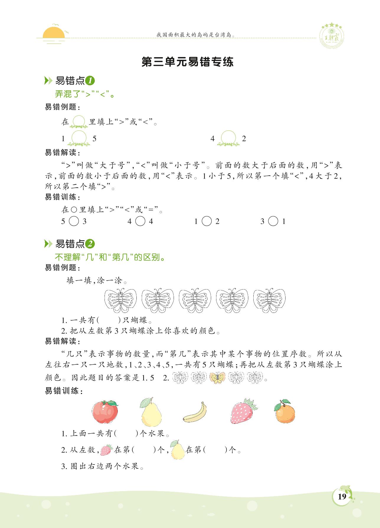 2021上册一年级数学人教版 第三单元 1~5的认识和加减法——第三单元易错专练