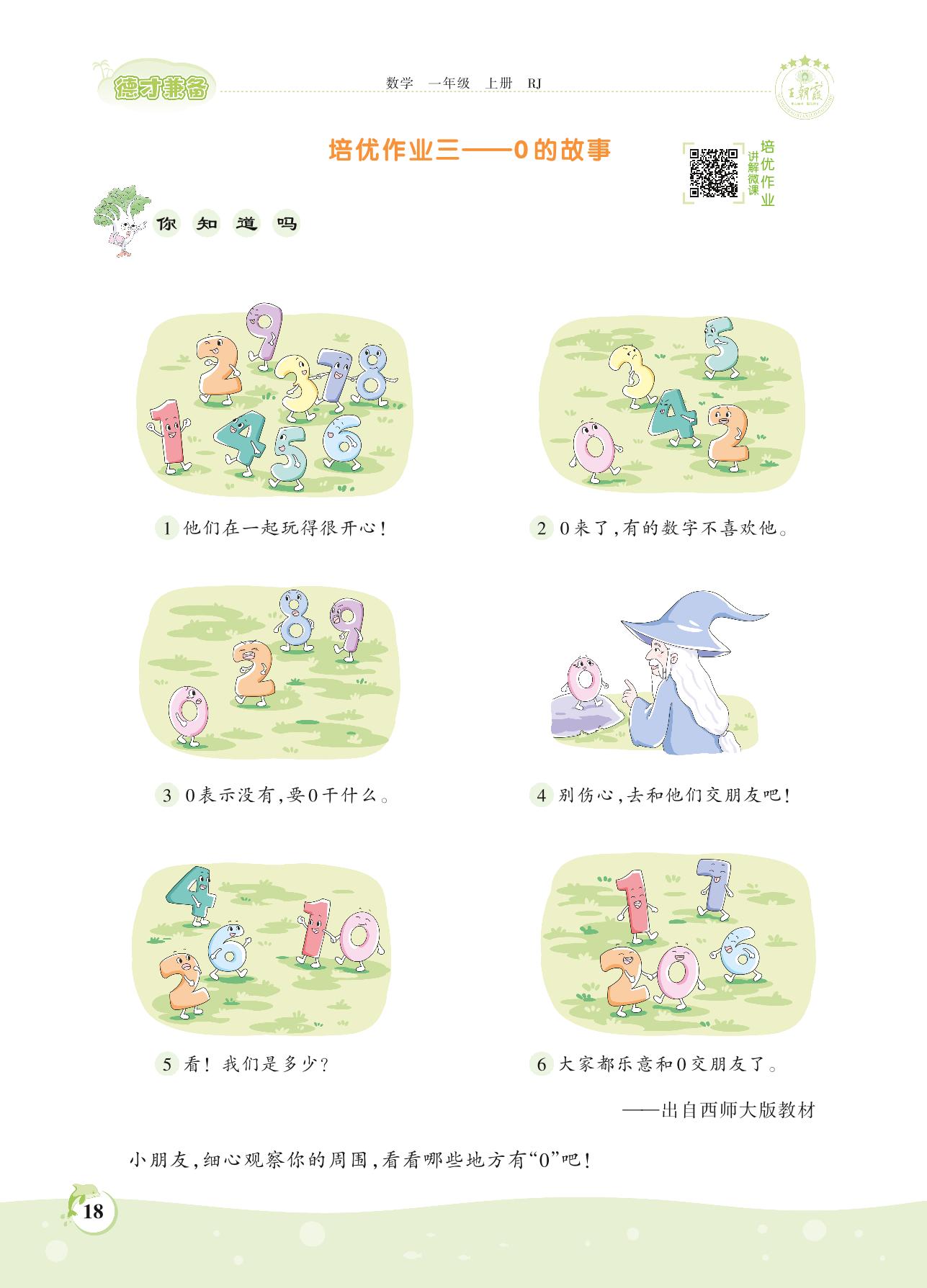 2021上册一年级数学人教版 第三单元 1~5的认识和加减法——培优作业三——0的故事