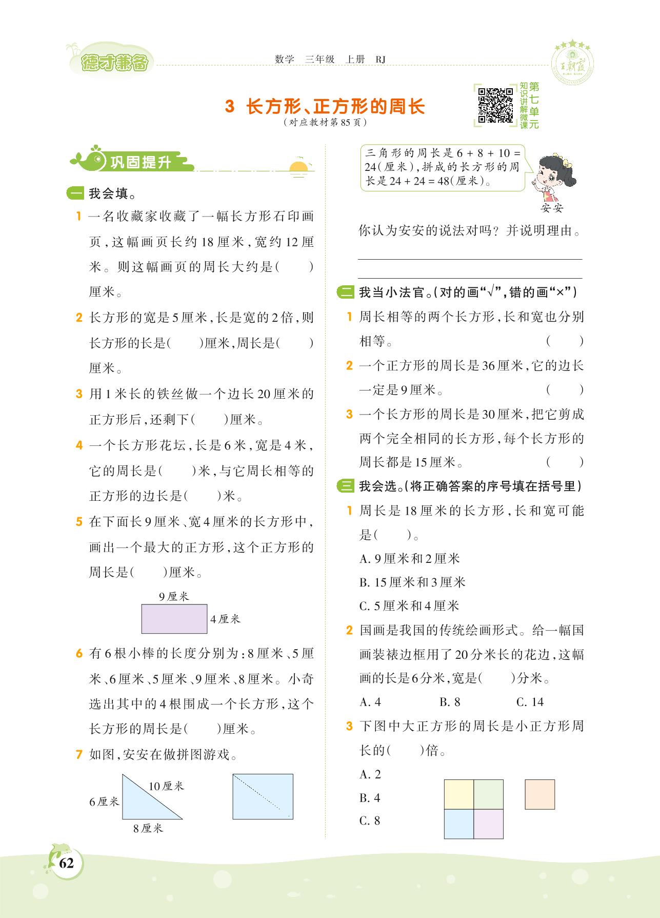 2021上册三年级数学人教版 第七单元 长方形和正方形——3 长方形、正方形的周长