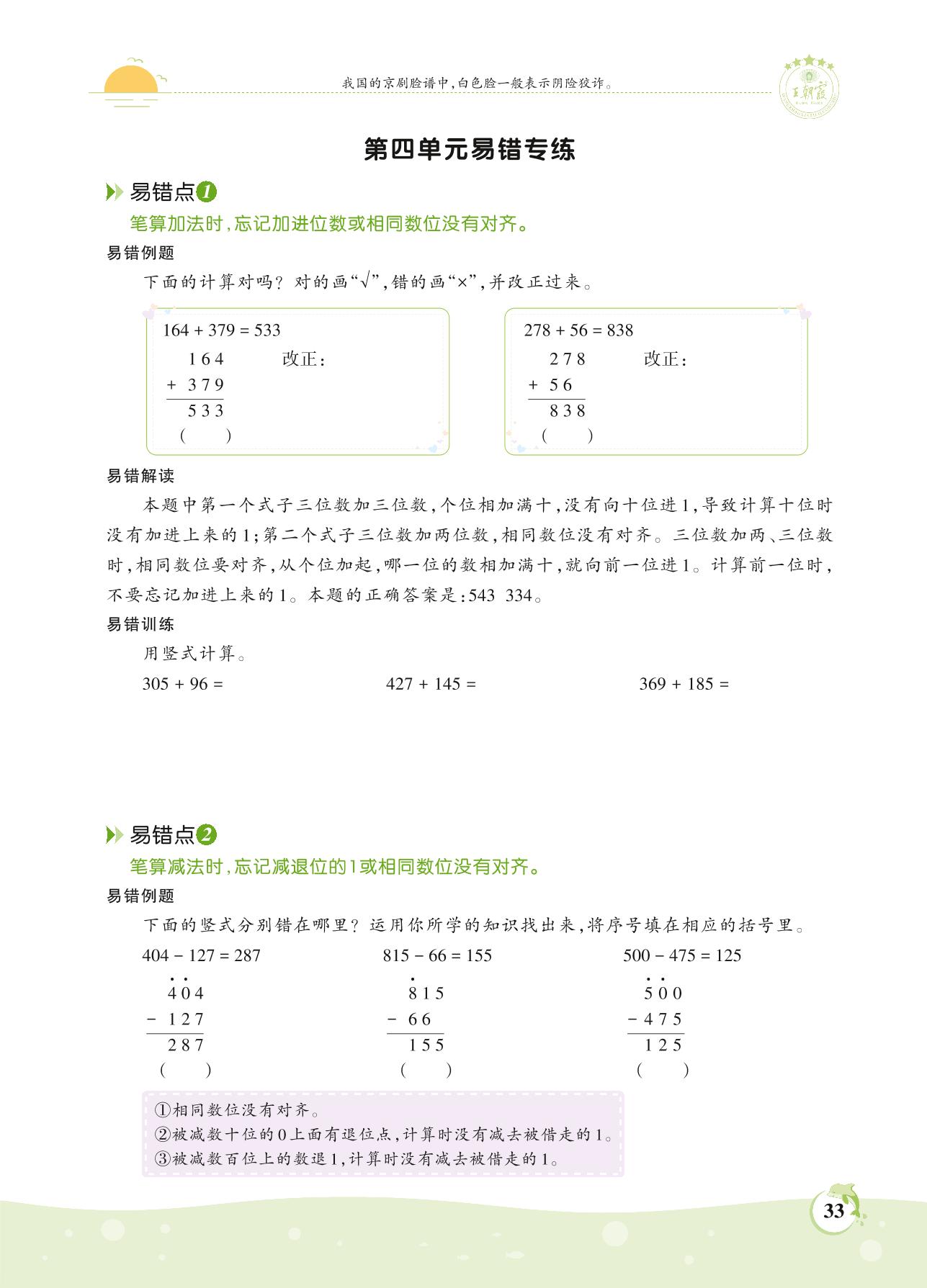 2021上册三年级数学人教版 第四单元 万以内的加法和减法(二)——第四单元易错专练