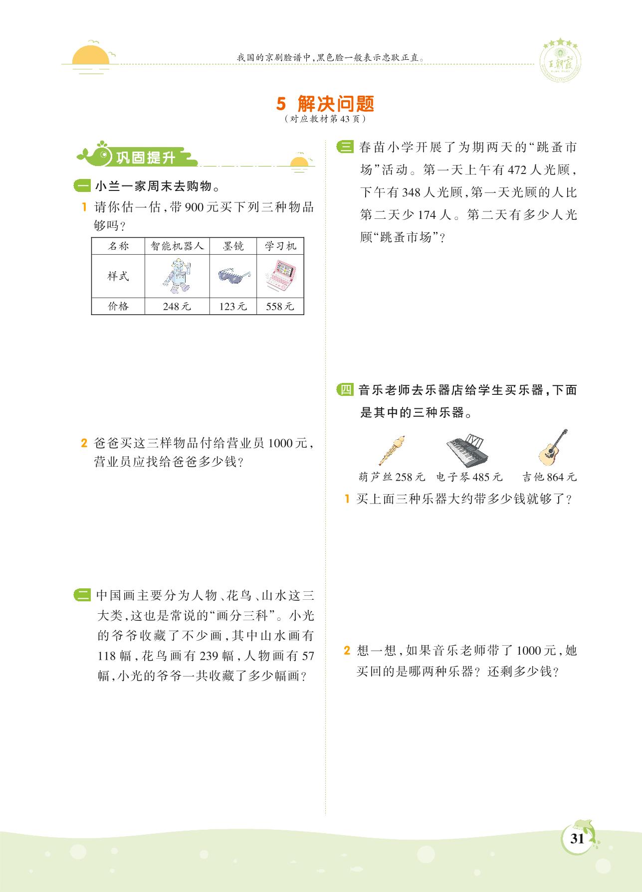 2021上册三年级数学人教版 第四单元 万以内的加法和减法(二)——5 解决问题