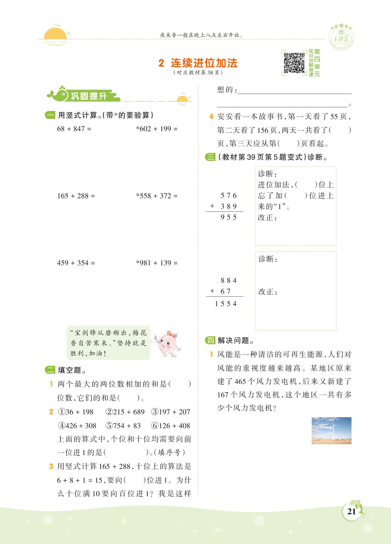 2021上册三年级数学人教版 第四单元 万以内的加法和减法(二)——2 连续进位加法