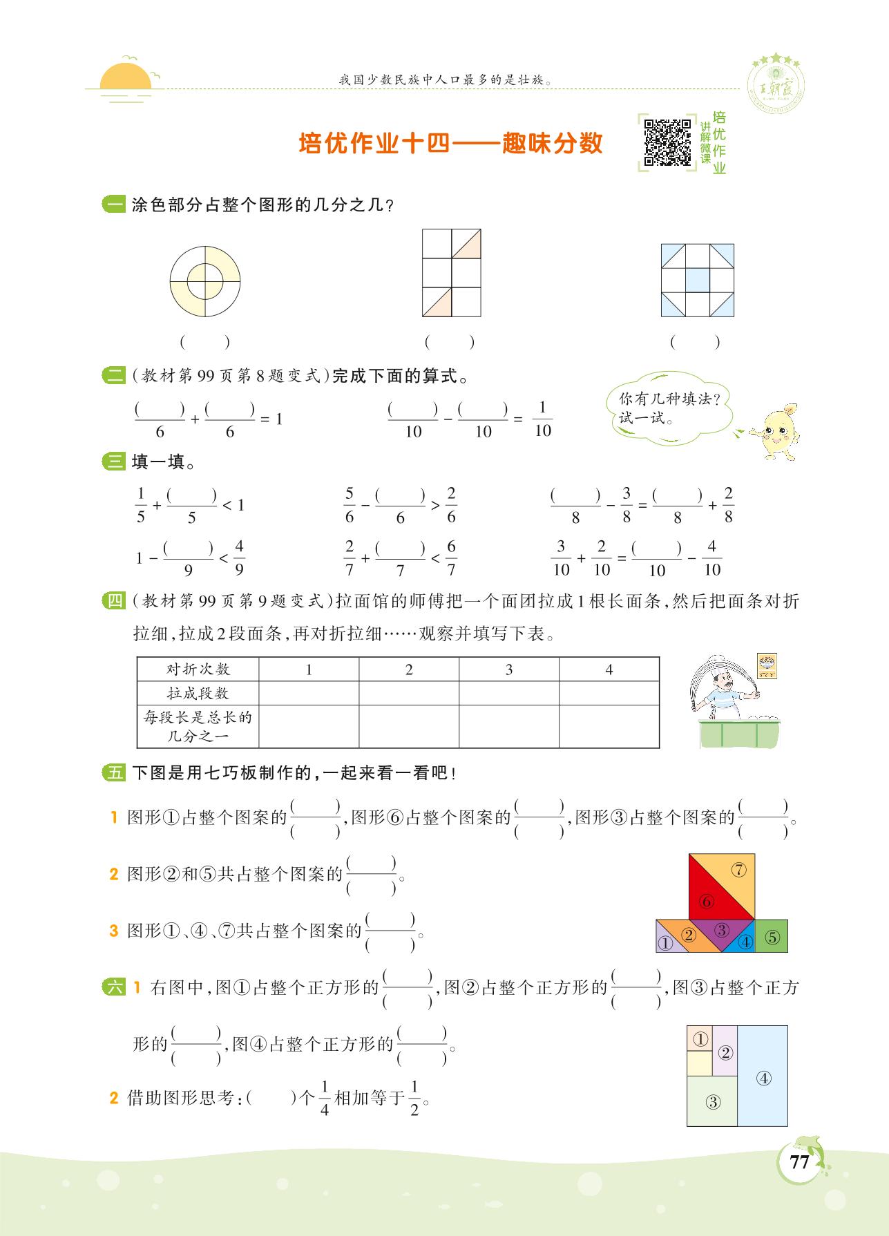 2021上册三年级数学人教版 第八单元 分数的初步认识——培优作业十四 趣味分数