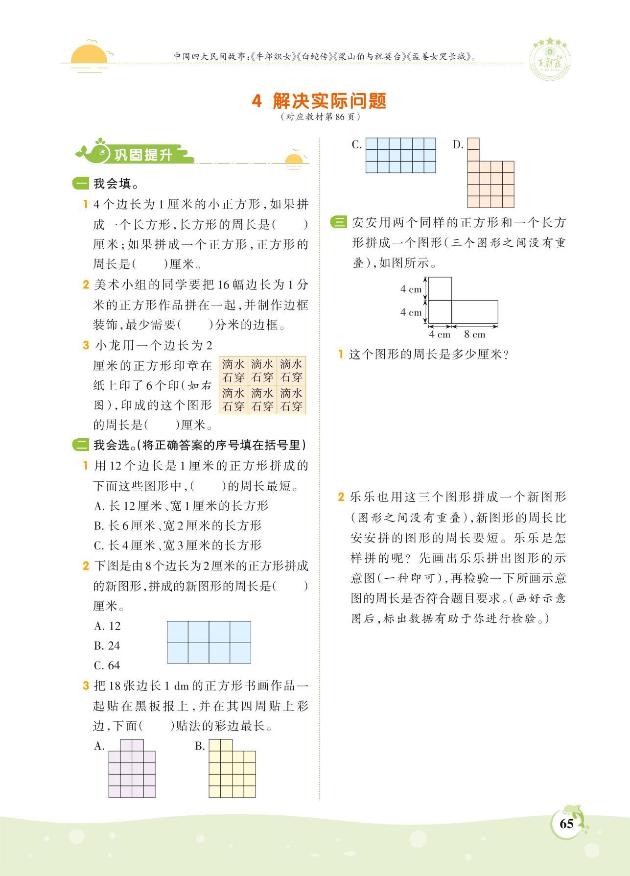 2021上册三年级数学人教版 第七单元 长方形和正方形——4 解决实际问题