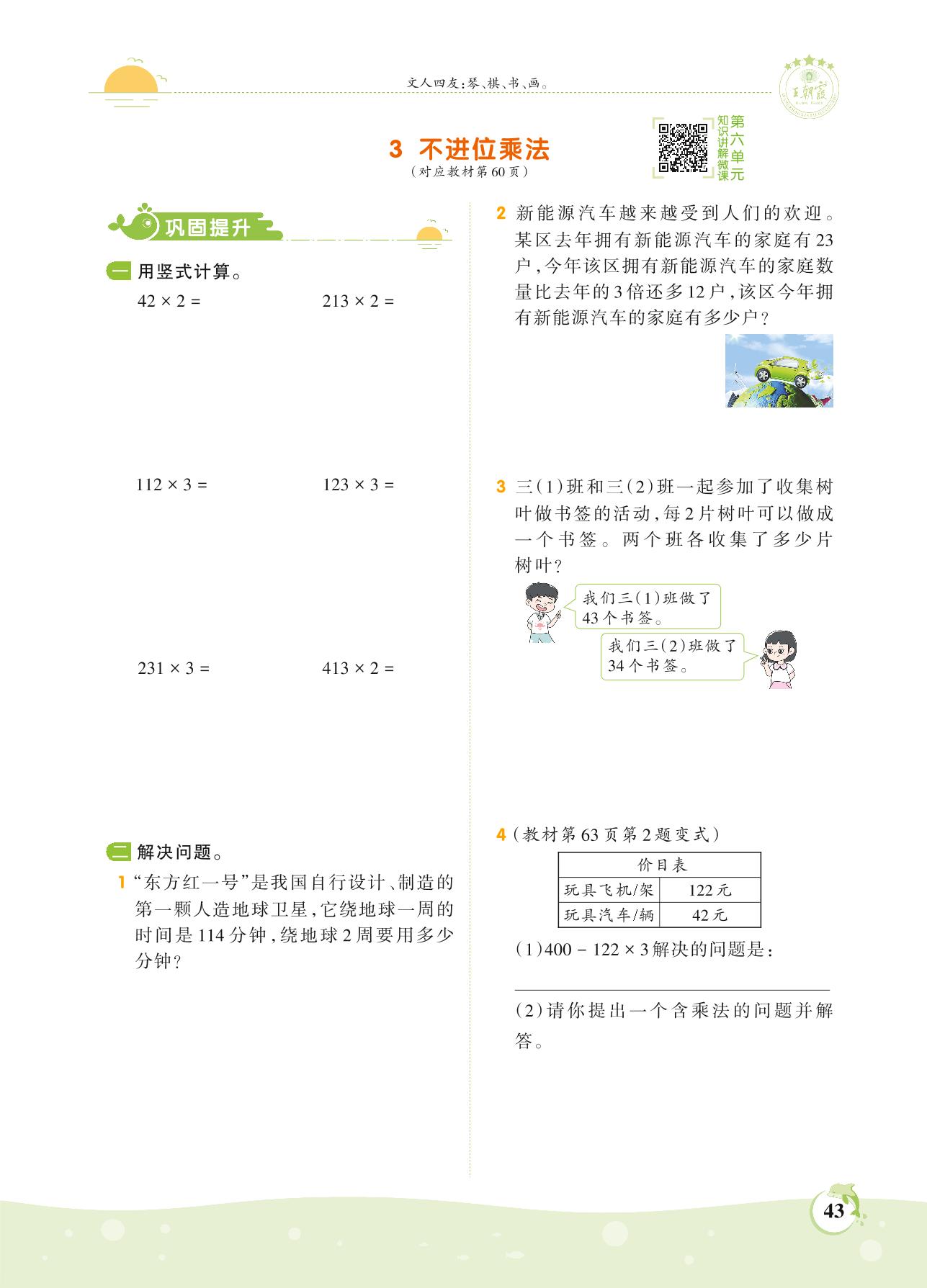 2021上册三年级数学人教版 第六单元 多位数乘一位数——3 不进位乘法