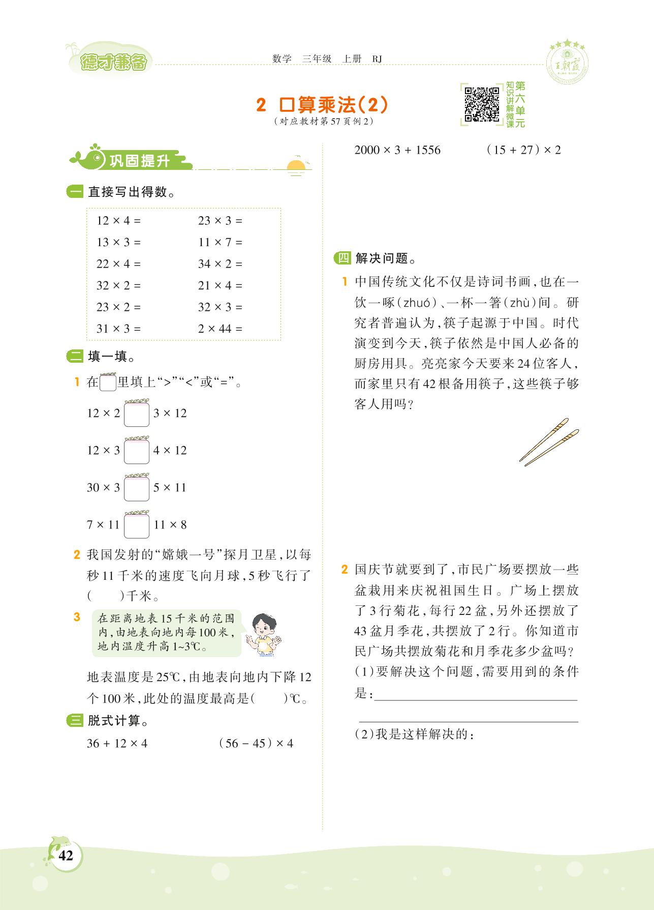 2021上册三年级数学人教版 第六单元 多位数乘一位数——2 口算乘法(2)