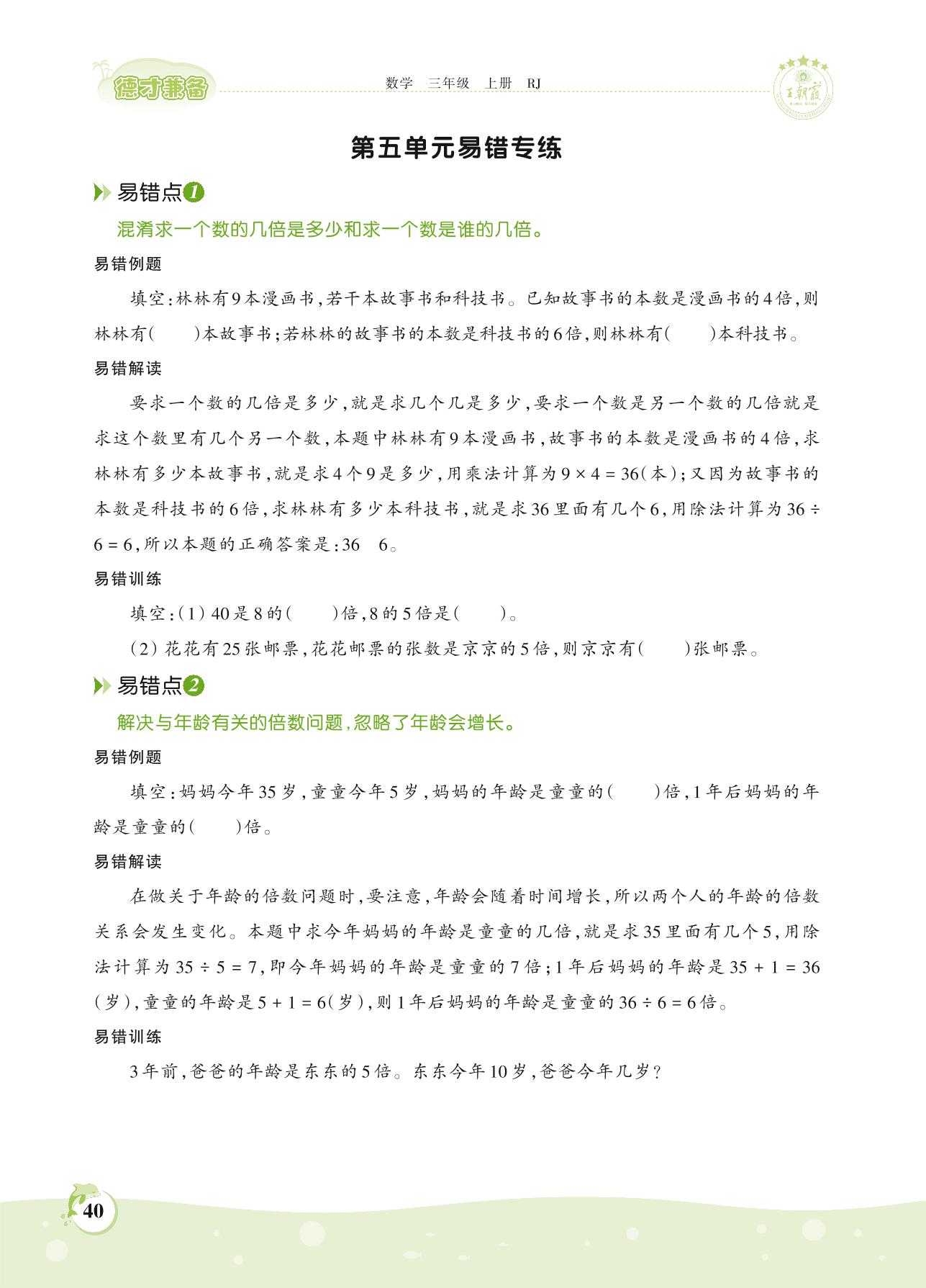 2021上册三年级数学人教版 第五单元 倍的认识——第五单元易错专练