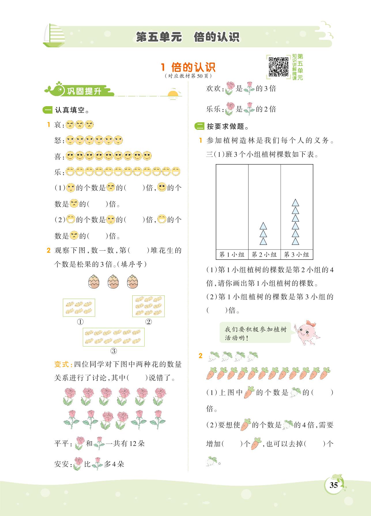 2021上册三年级数学人教版 第五单元 倍的认识——1 倍的认识