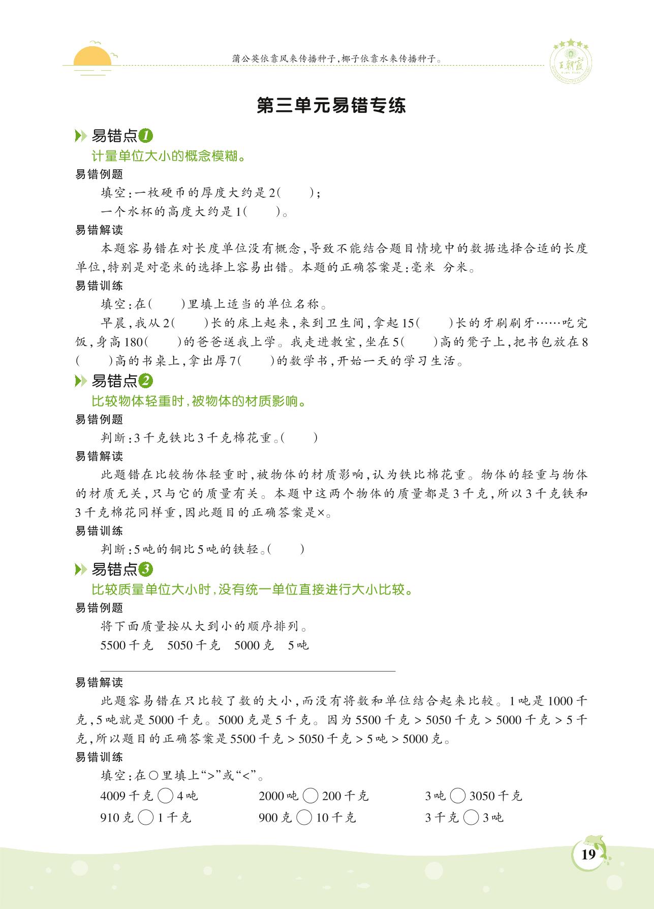 2021上册三年级数学人教版 第三单元 测量——第三单元易错专练