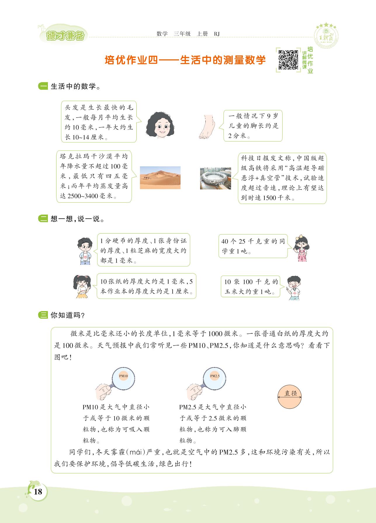 2021上册三年级数学人教版 第三单元 测量——培优作业四 生活中的测量数学
