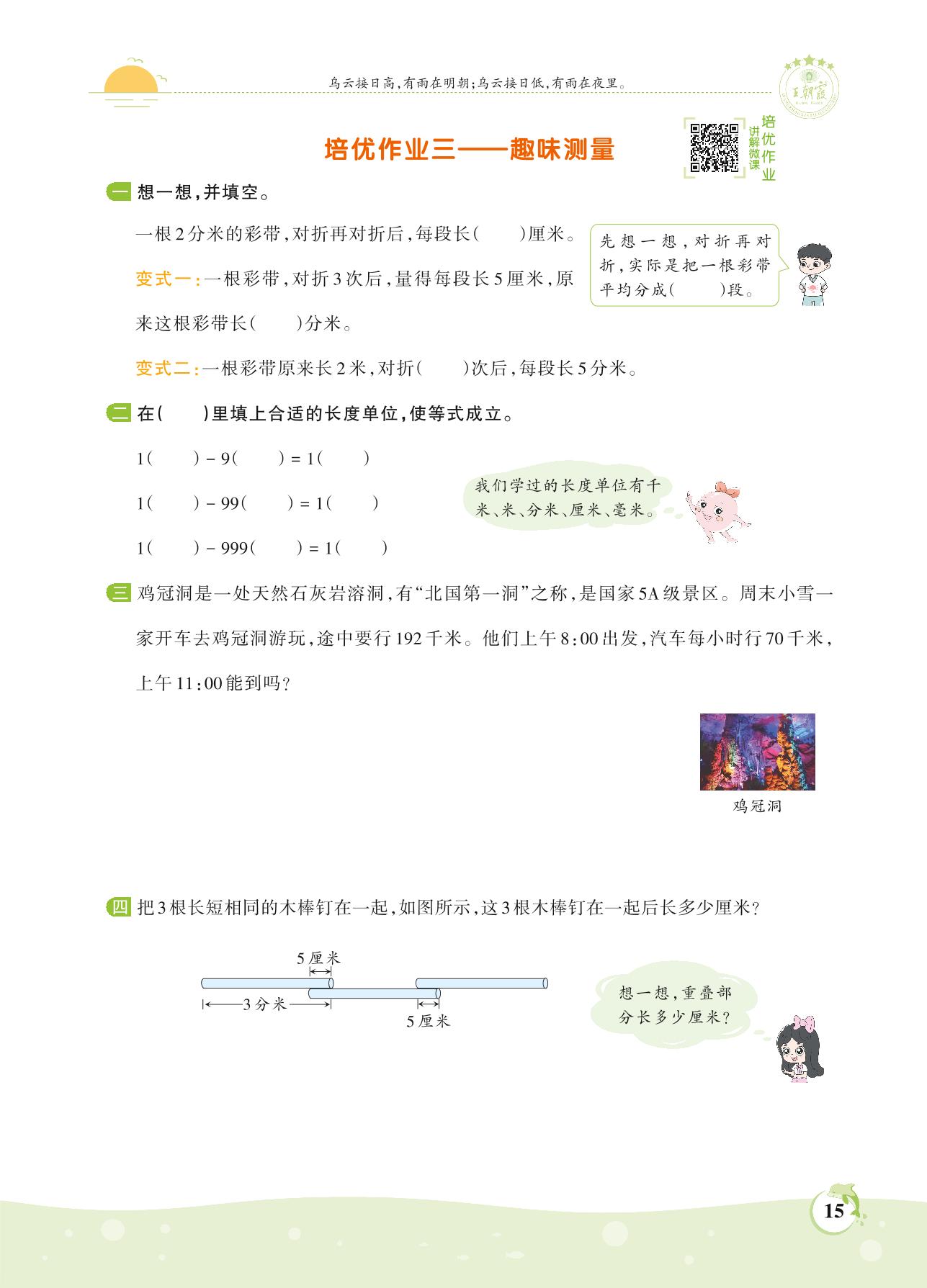 2021上册三年级数学人教版 第三单元 测量——培优作业三 趣味测量