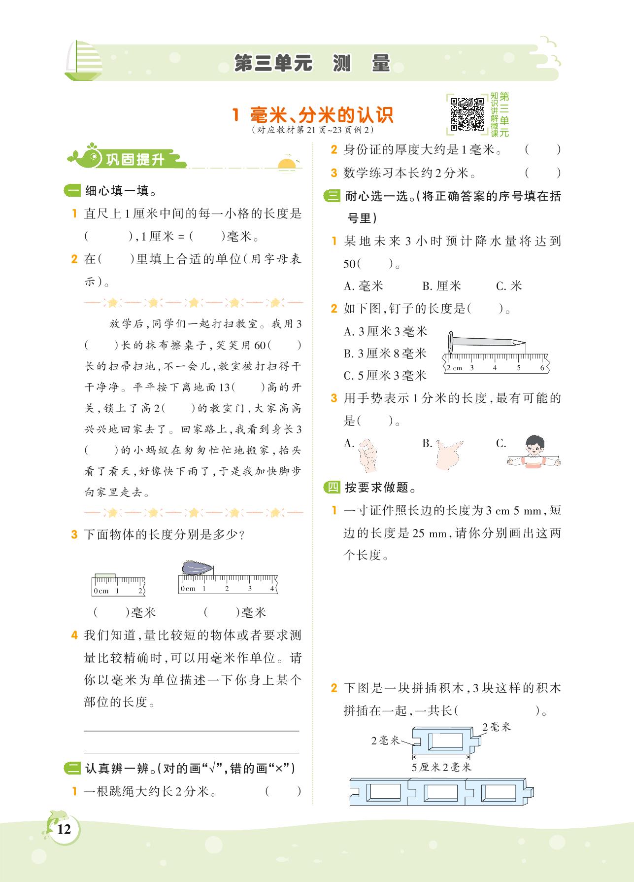 2021上册三年级数学人教版 第三单元 测量——1 毫米、分米的认识