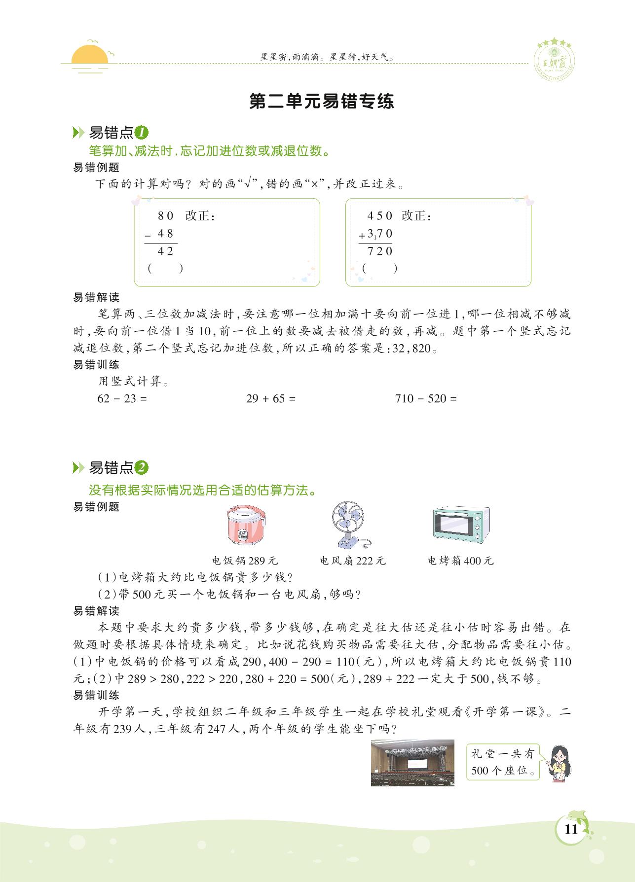 2021上册三年级数学人教版 第二单元 万以内的加法和减法(一)——第二单元易错专练