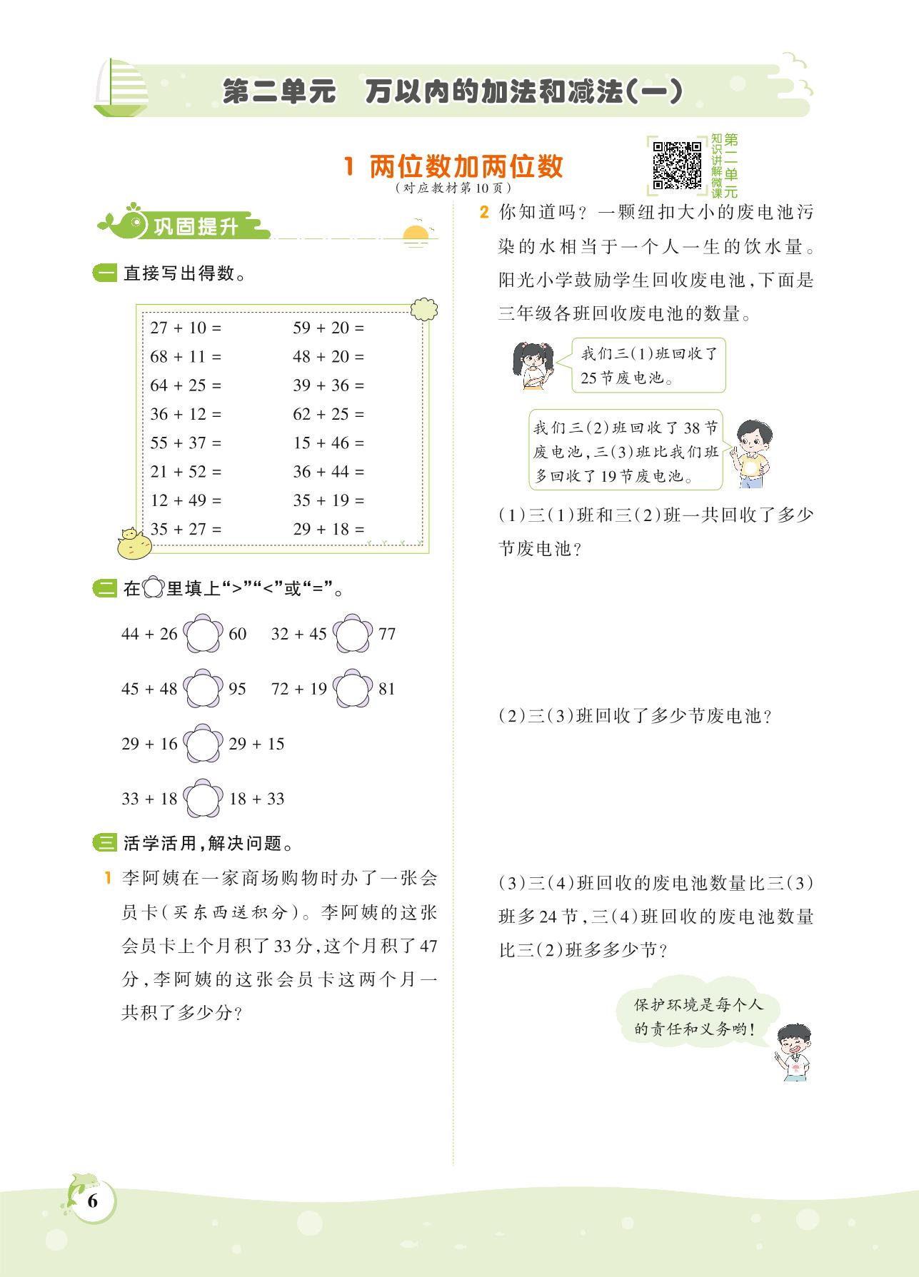 2021上册三年级数学人教版 第二单元 万以内的加法和减法(一)——1 两位数加两位数