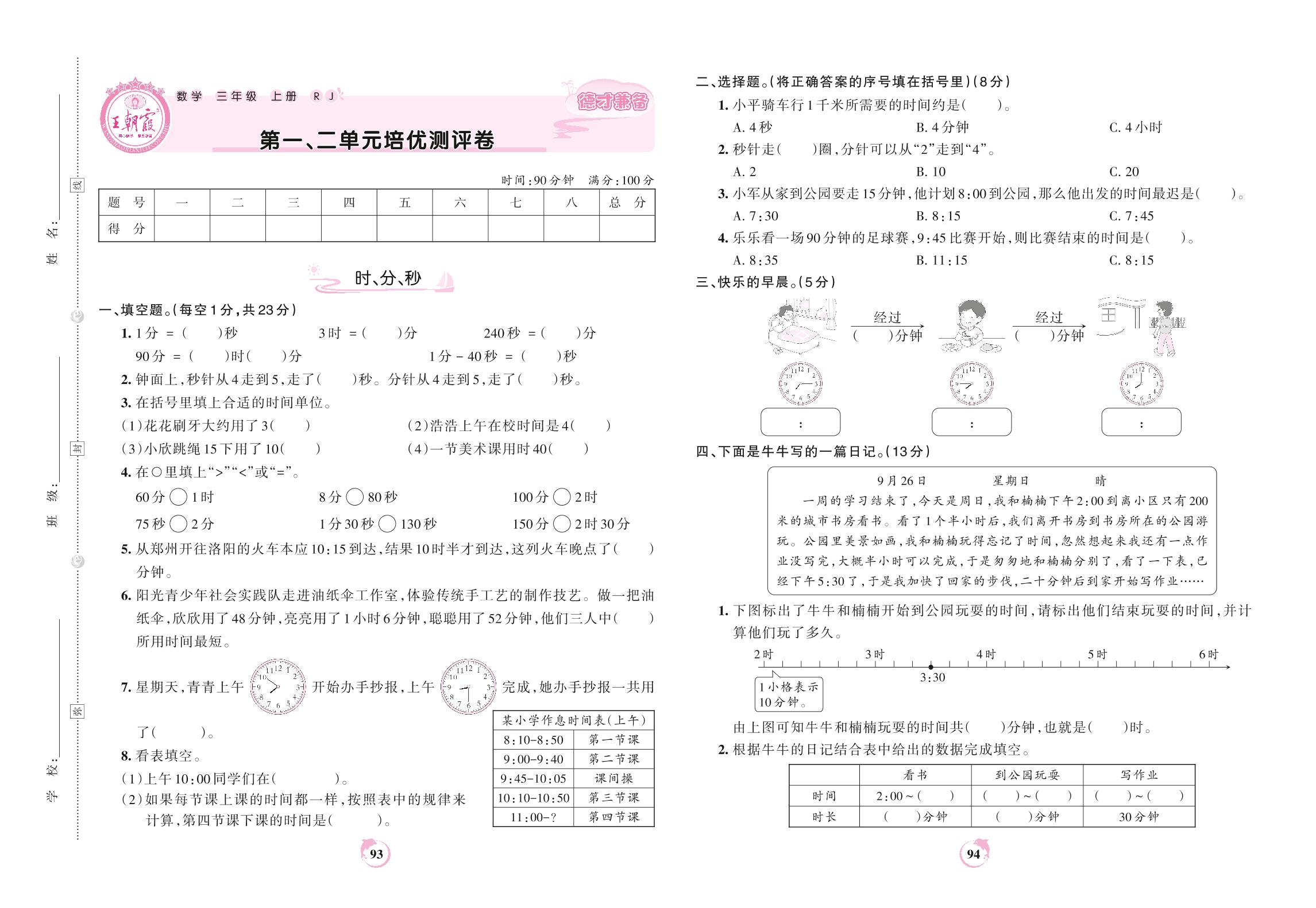三年级数学人教版上册单元卷