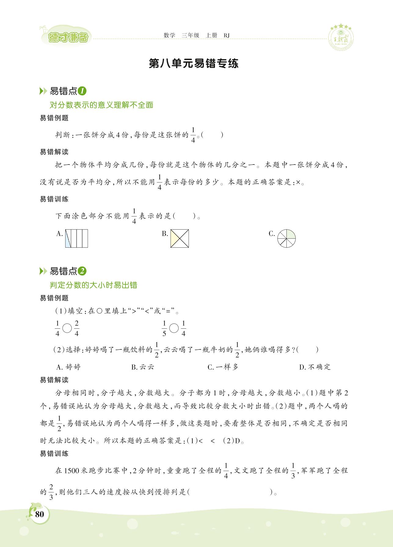 2021上册三年级数学人教版 第八单元 分数的初步认识——第八单元易错专练