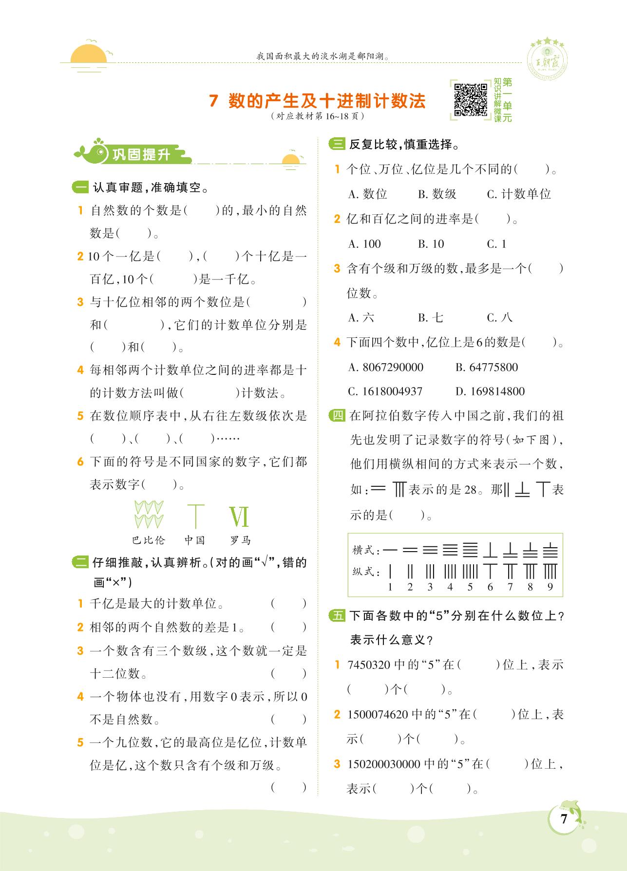 2021上册四年级数学人教版 第一单元 大数的认识——7 数的产生及十进制计数法