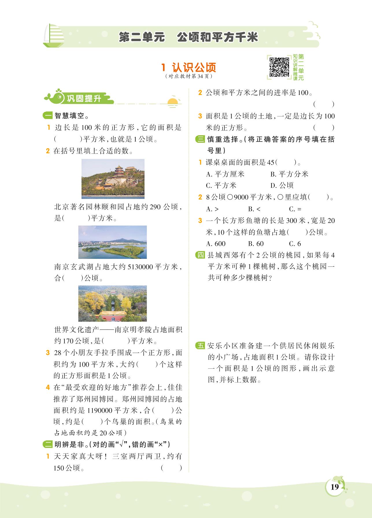 2021上册四年级数学人教版 第二单元 公顷和平方千米——1 认识公顷
