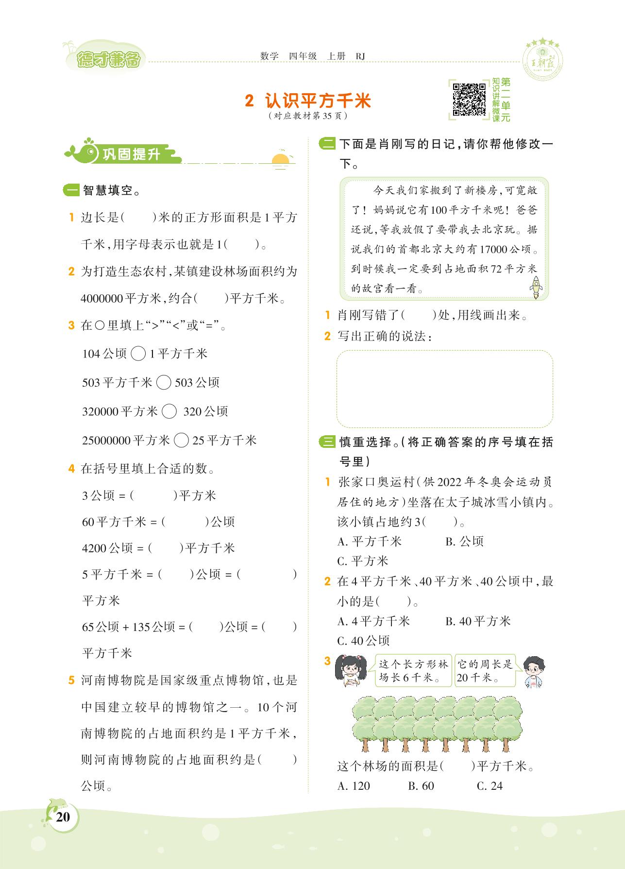 2021上册四年级数学人教版 第二单元 公顷和平方千米——2 认识平方千米