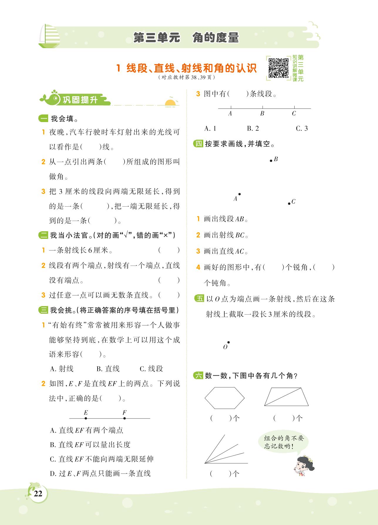 2021上册四年级数学人教版 第三单元 角的度量——1 线段、直线、射线和角的认识