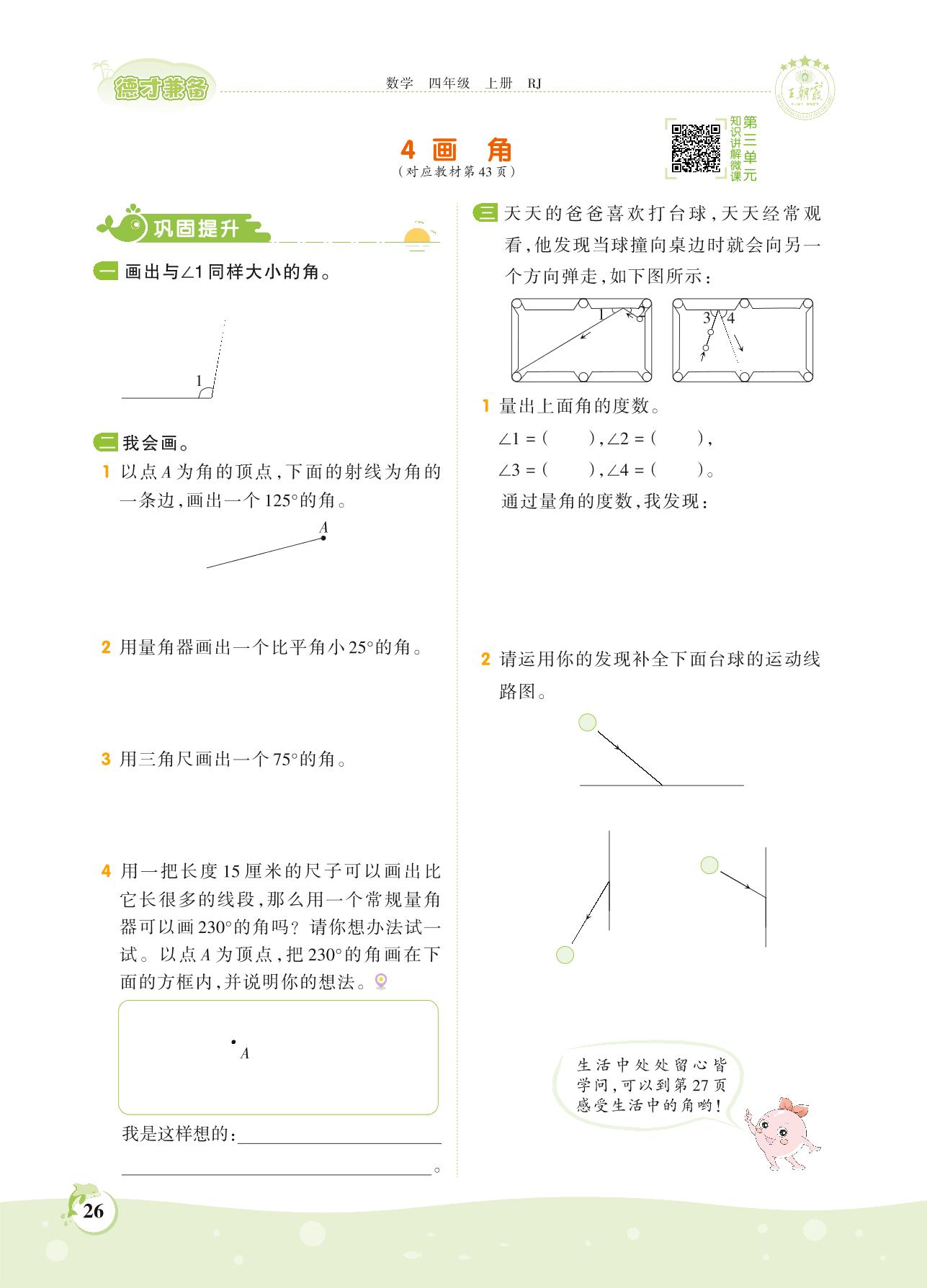 2021上册四年级数学人教版 第三单元 角的度量——4 画角