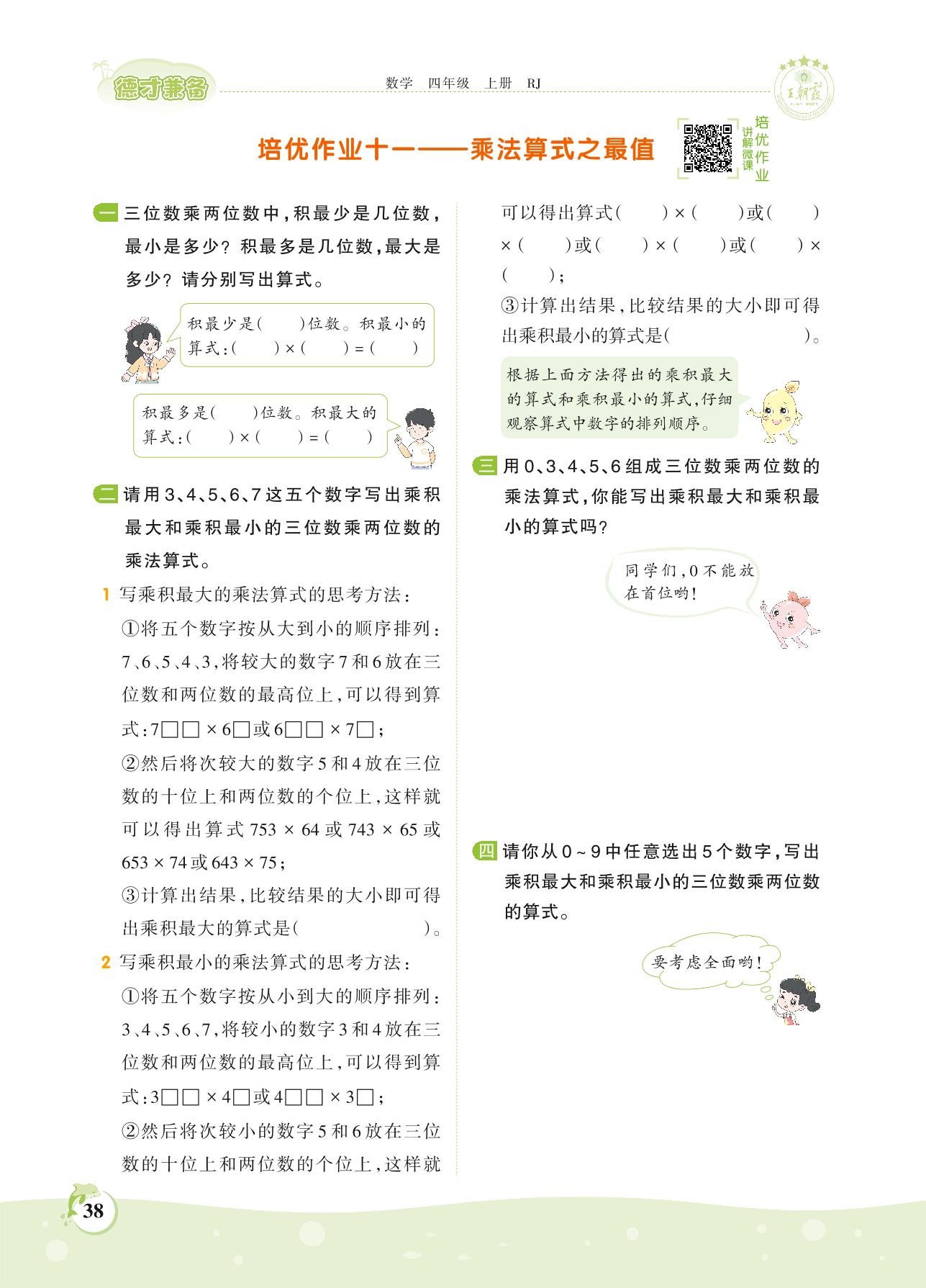 2021上册四年级数学人教版 第四单元 三位数乘两位数——培优作业十一 乘法算式之最值