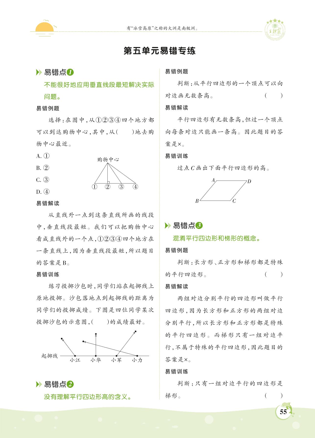 2021上册四年级数学人教版 第五单元 平行四边形和梯形——第五单元易错专练