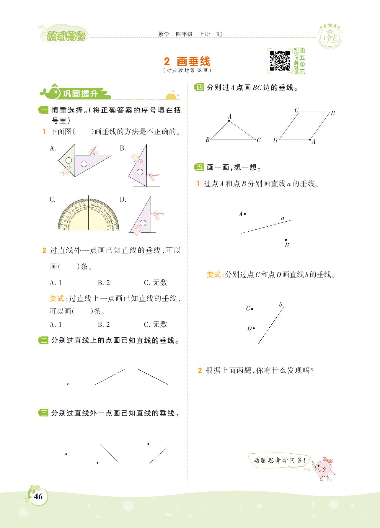 2021上册四年级数学人教版 第五单元 平行四边形和梯形——2 画垂线