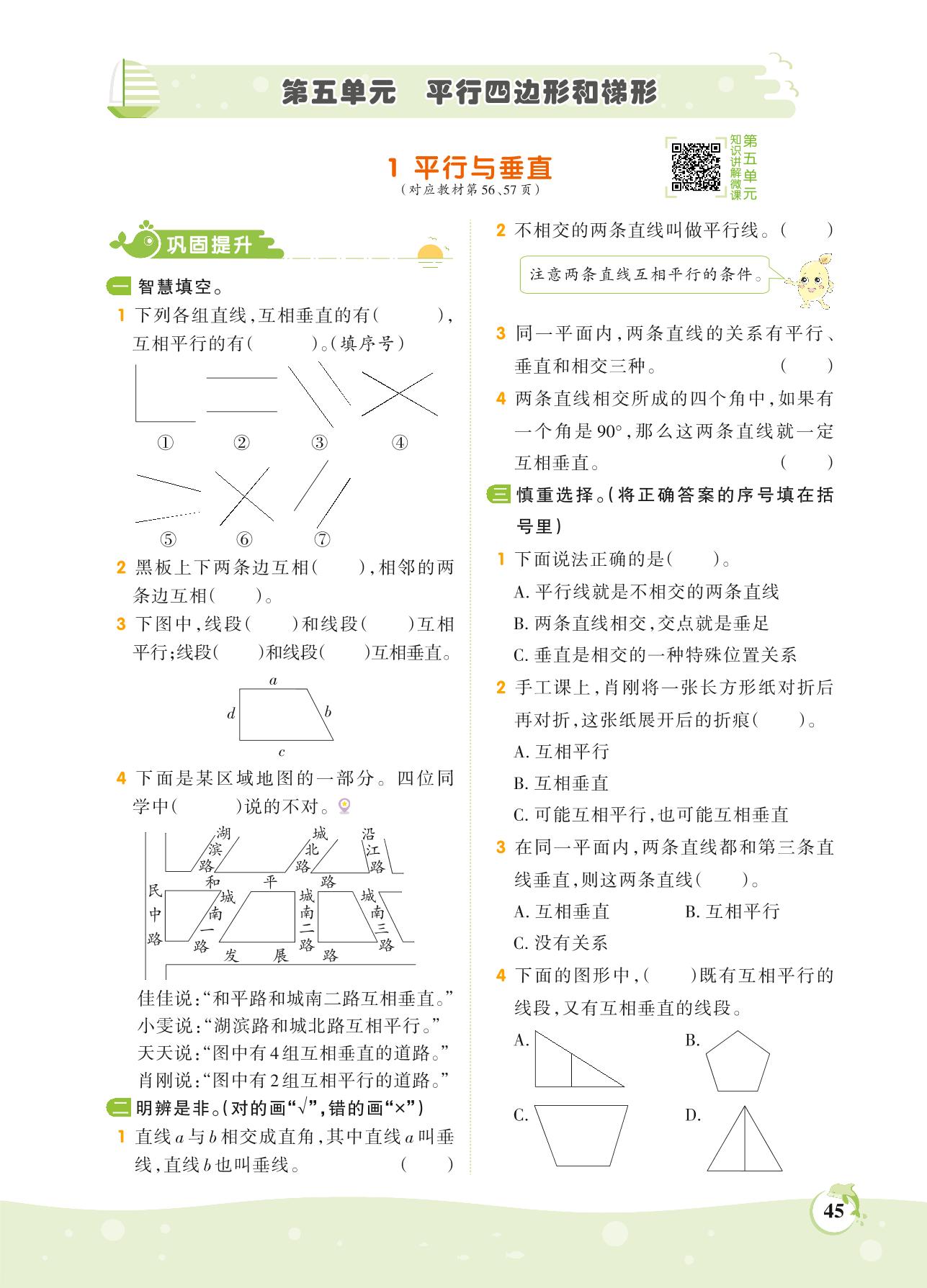 2021上册四年级数学人教版 第五单元 平行四边形和梯形——1 平行与垂直