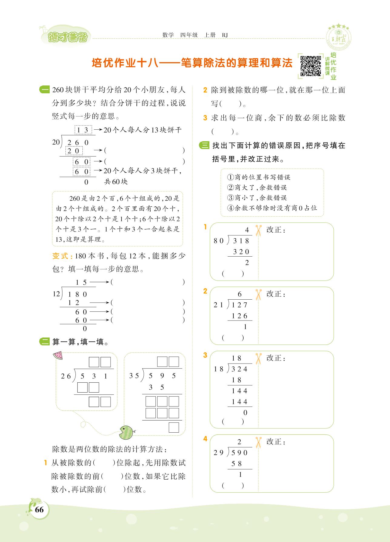 2021上册四年级数学人教版 第六单元 除数是两位数的除法——培优作业十八 笔算除法的算理和算法