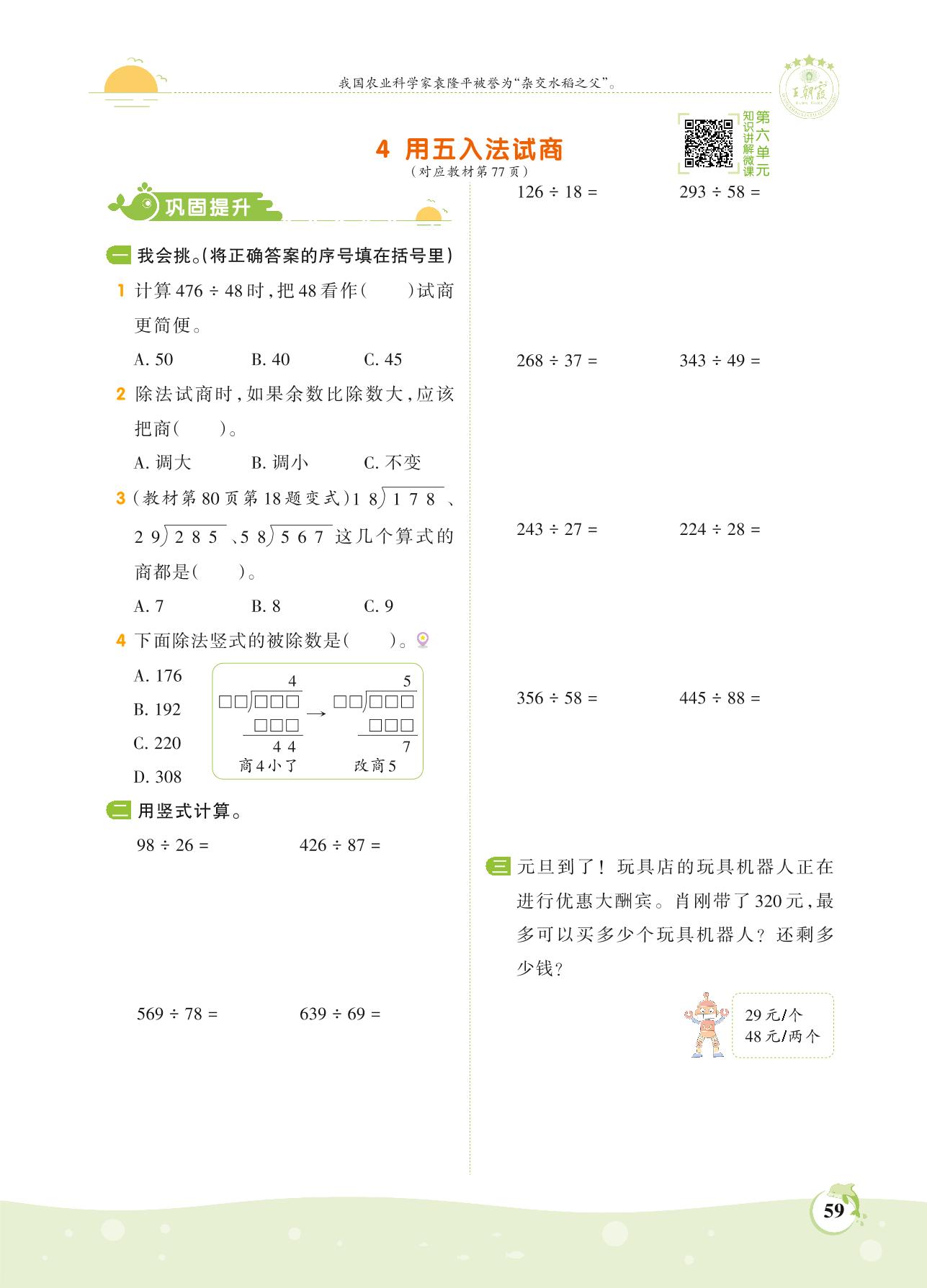 2021上册四年级数学人教版 第六单元 除数是两位数的除法——4 用五入法试商