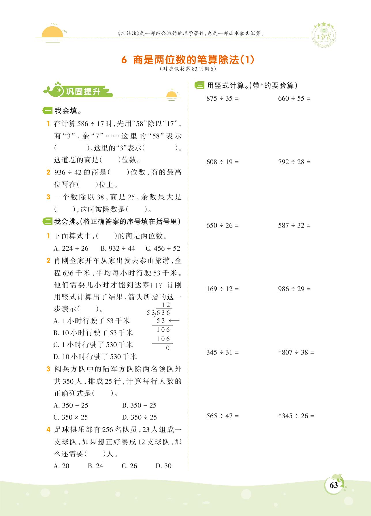 2021上册四年级数学人教版 第六单元 除数是两位数的除法——6 商是两位数的笔算除法(1)