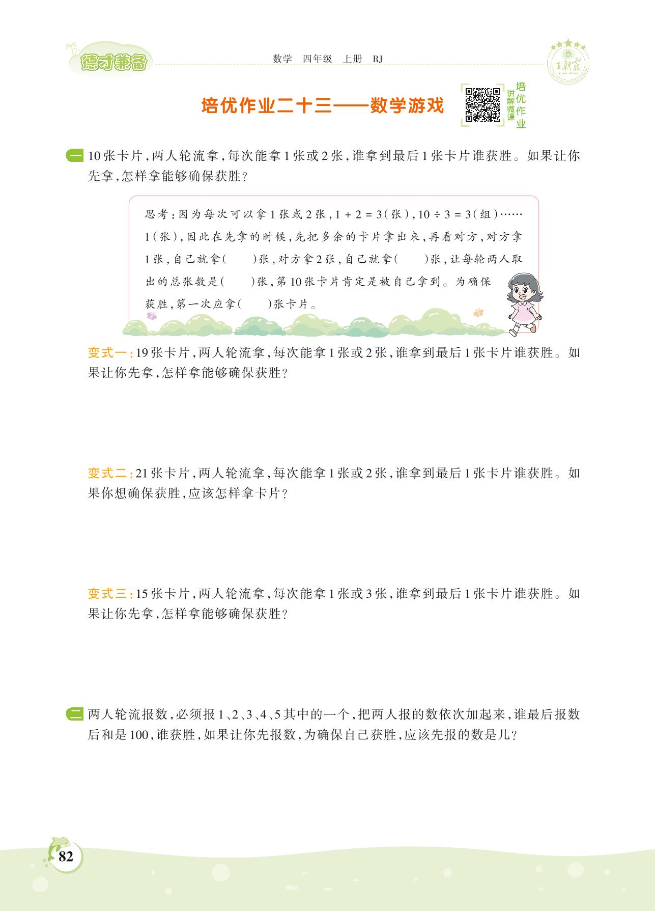 2021上册四年级数学人教版 第八单元 数学广角 优化——培优作业二十三 数学游戏