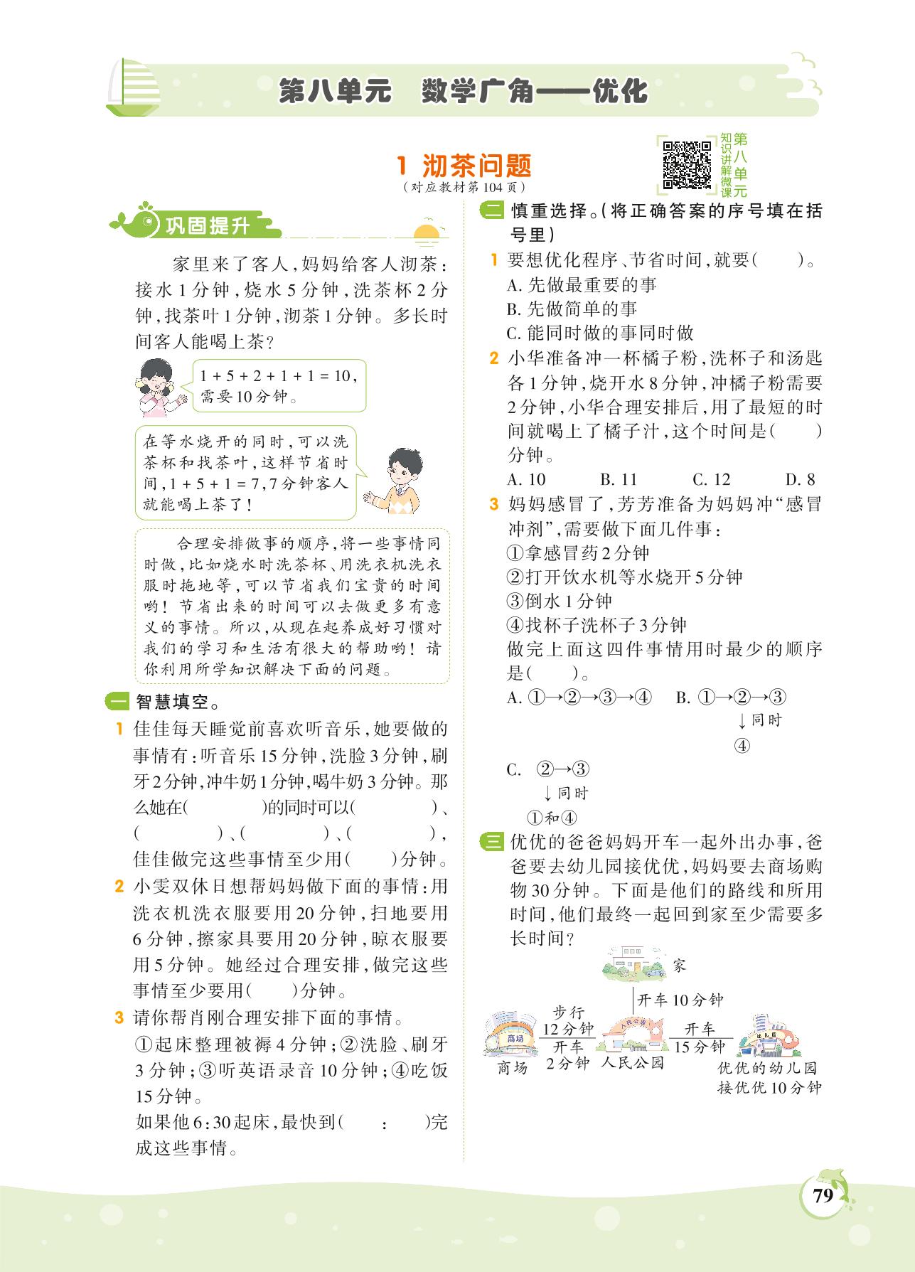 2021上册四年级数学人教版 第八单元 数学广角 优化——1 沏茶问题